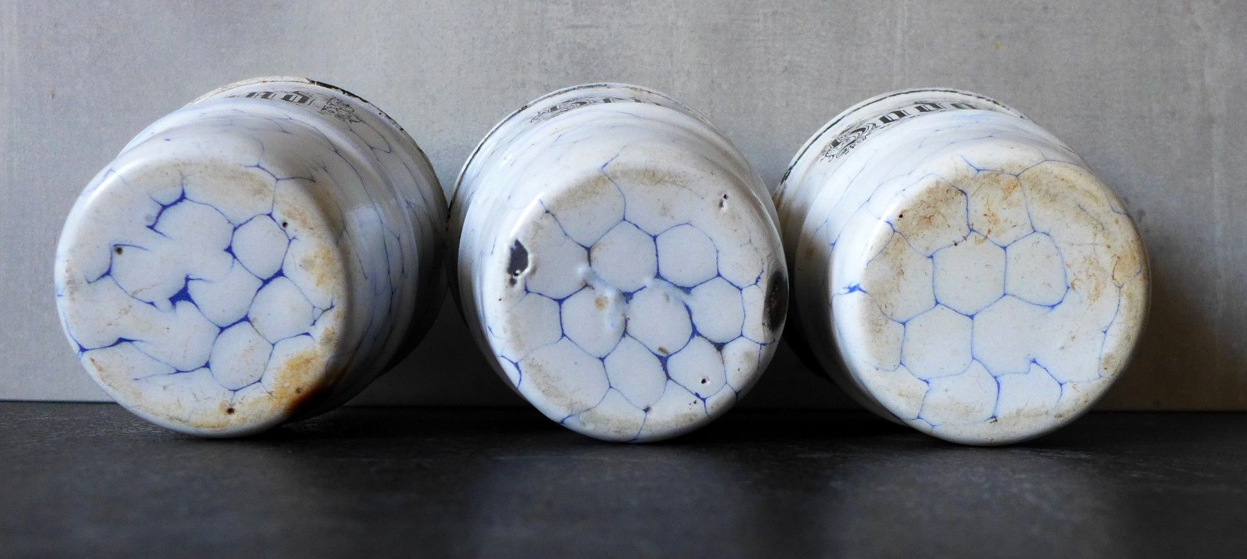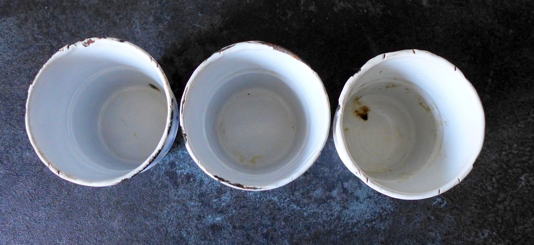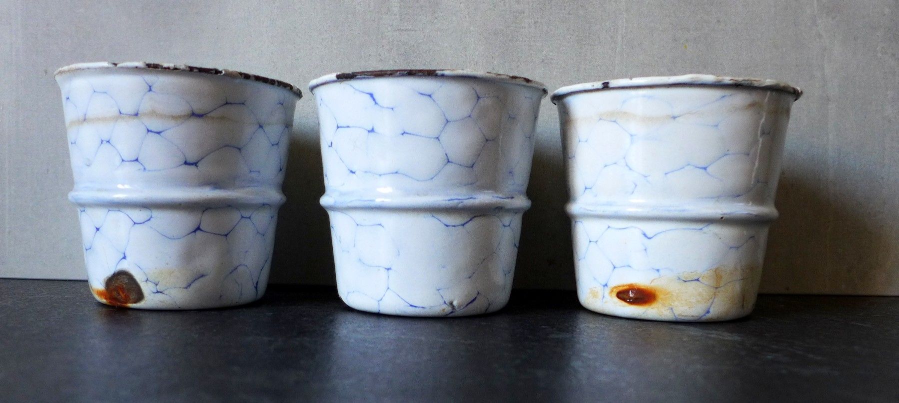 3 alte Emaille Sand Seife Soda Wabenmuster Netzmuster