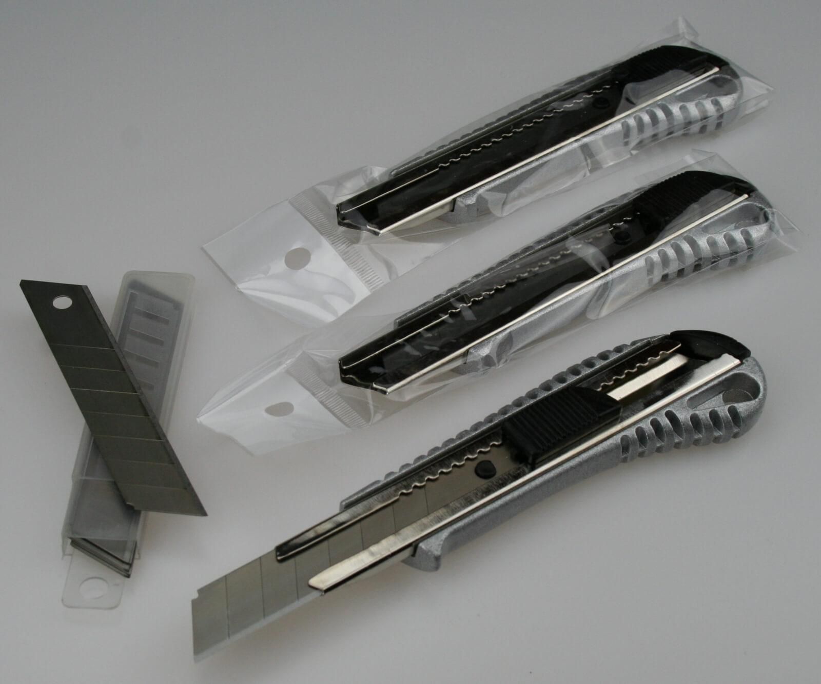 3 Alu Cuttermesser + 10 Abbrechklingen 18mm Profi Teppichmesser Cutterklingen Set