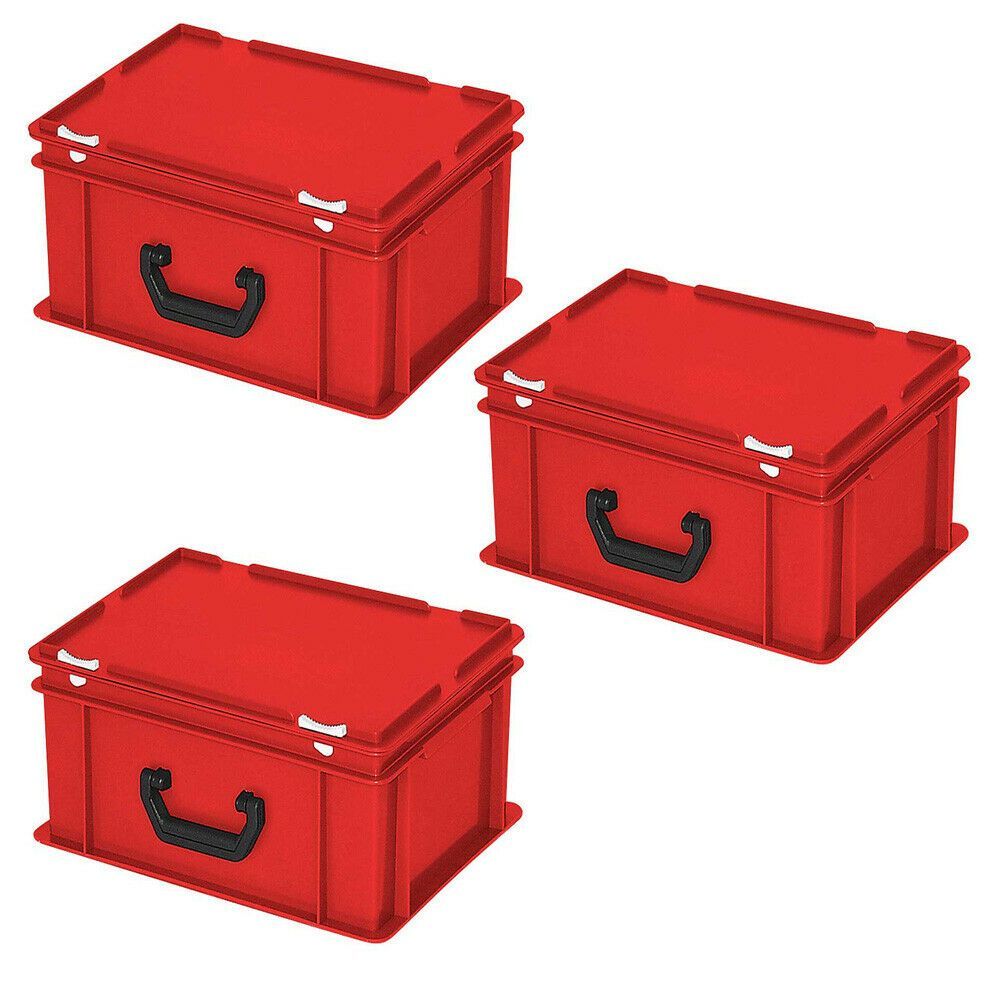 3 Aufbewahrungskoffer/ Kunststoffkoffer, LxBxH 400x300x180 mm, 16 Liter, rot