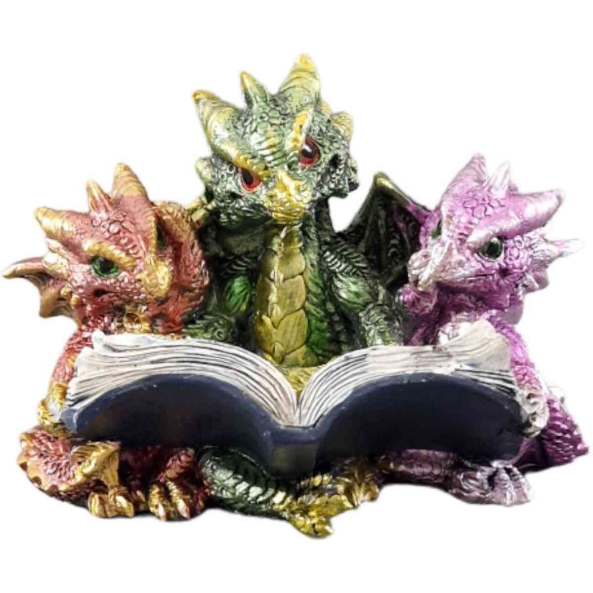 3 Babydrachen lesen ein Buch, bunt