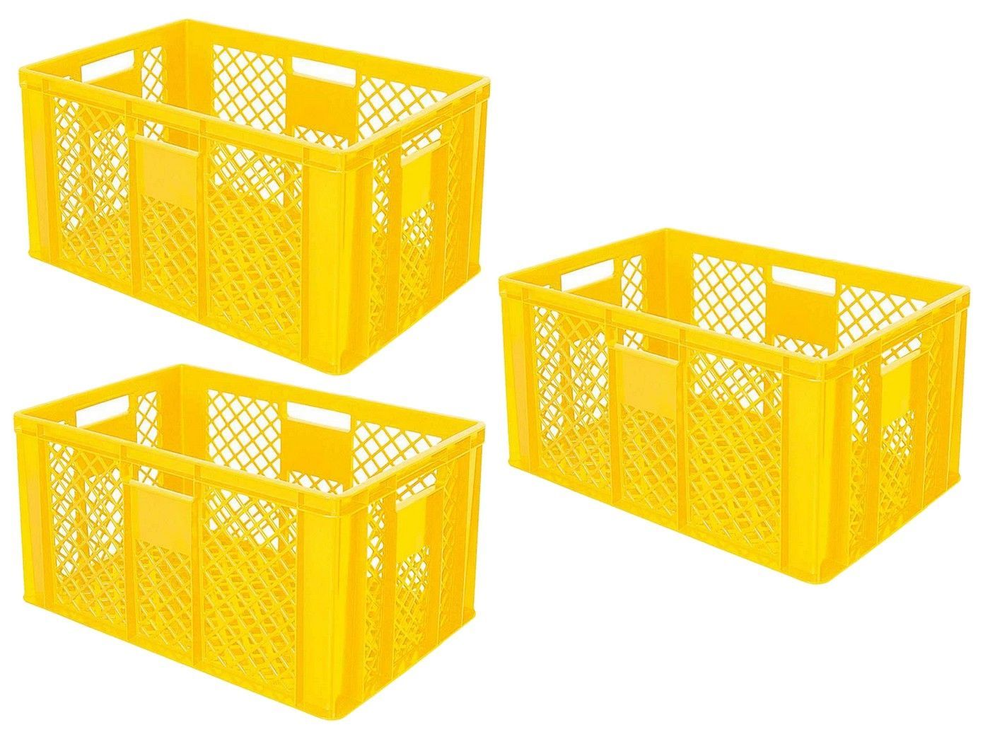 3 Bäckerkisten / Eurobehälter, LxBxH 600x400x320 mm, gelb, lebensmittelecht