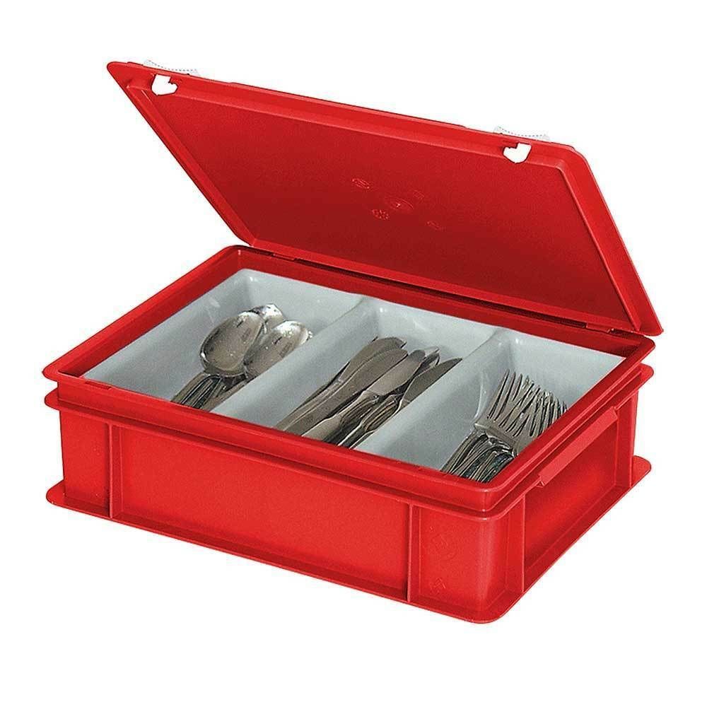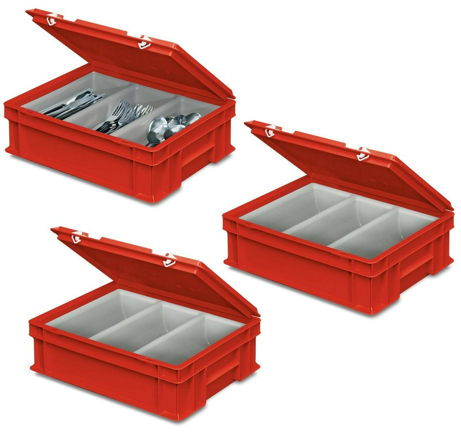 3 Besteckkasten / Sortierbehälter, 400 x 300 x 130 mm, rot, 3 Mulden je 2 Liter