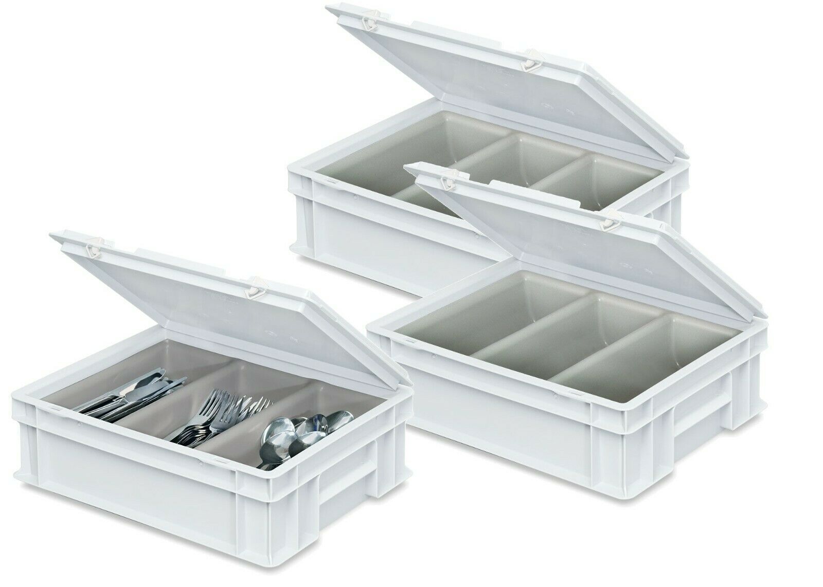 3 Besteckkoffer / Sortierbehälter, LxBxH 400 x 300 x 130 mm, Farbe weiß