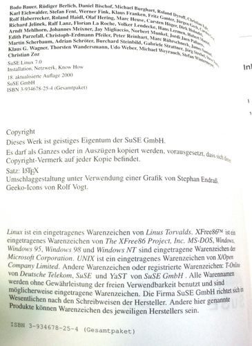 3 Bücher: SuSE LINUX 7.0 Das Handbuch + Programme + Konfiguration - ohne CD / DVD