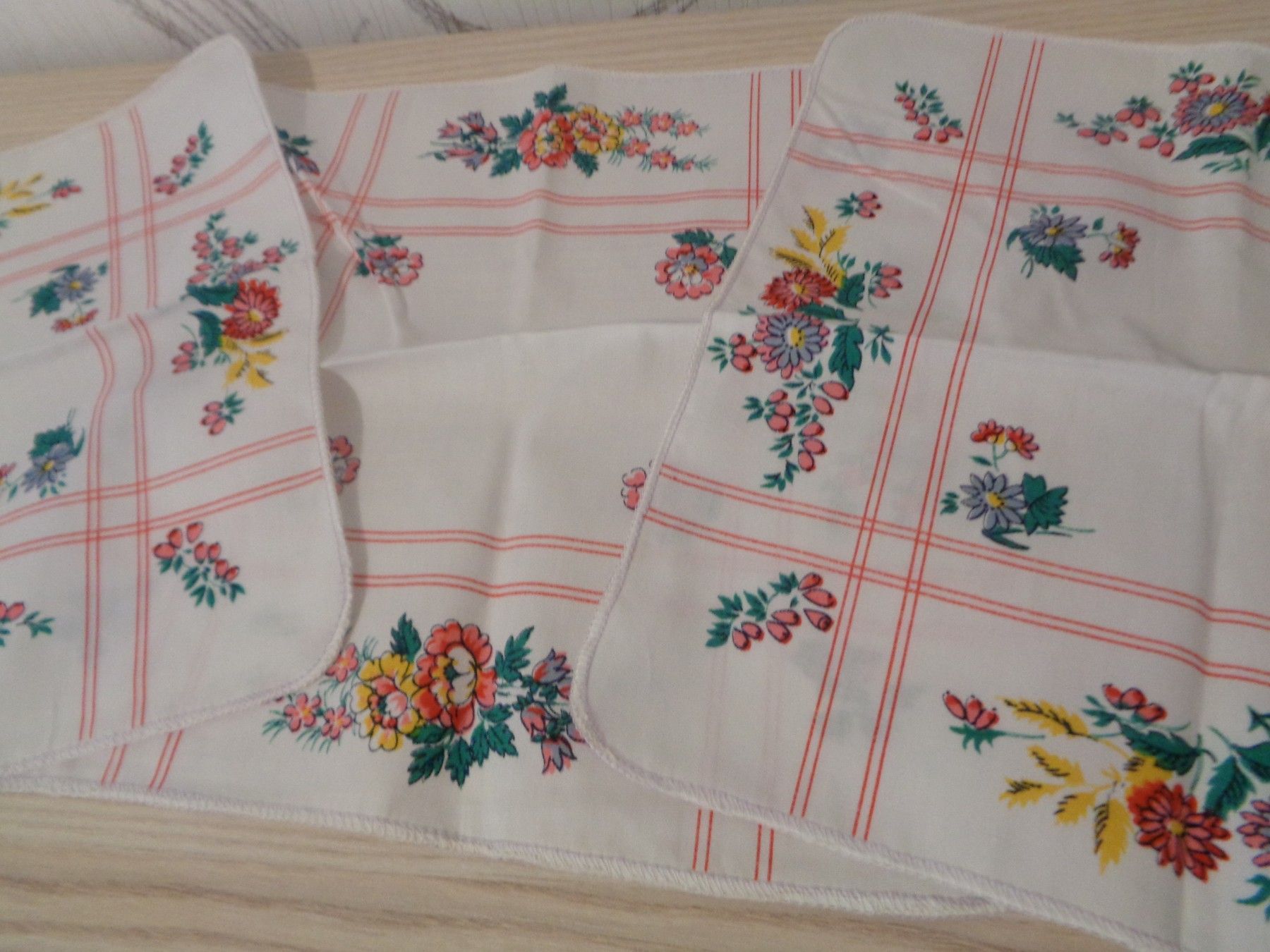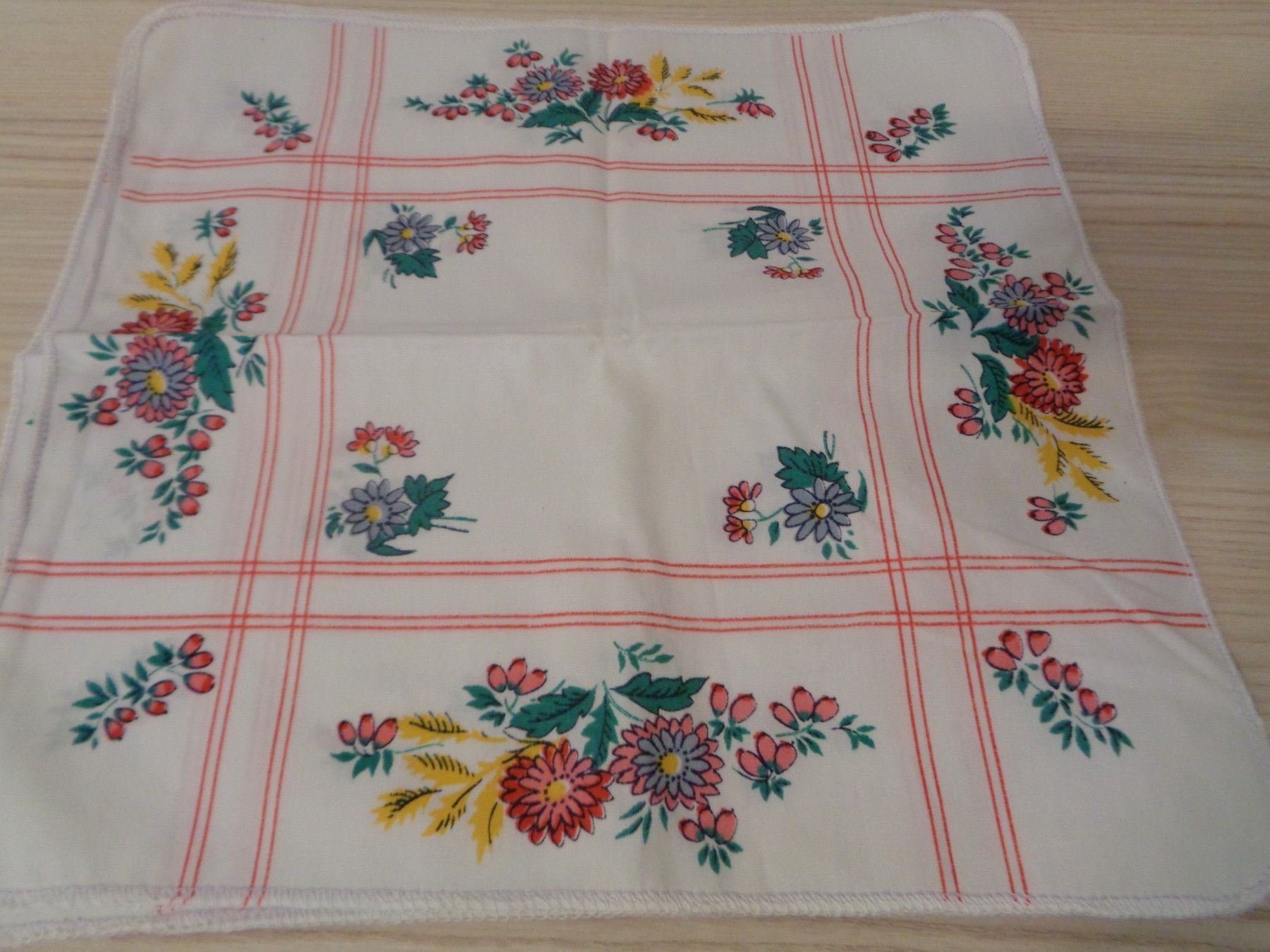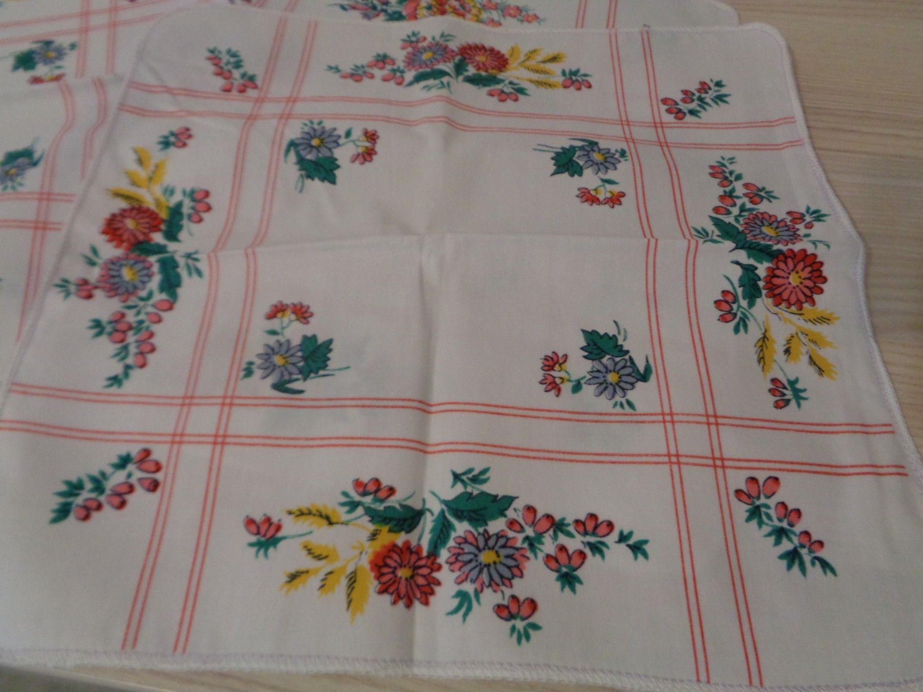 3 bunte Taschentücher mit Muster Blumen für Damen -DDR Erzeugnis unbenutzt