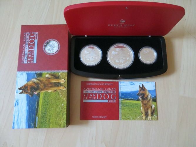 3 Coin Set Lunar Hund Proof PP Lunar 2018
