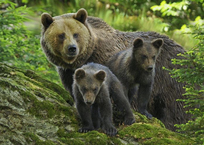 3 D Ansichtskarte Braunbär Familie, Postkarte Wackelkarte Hologrammkarte Tier Bären