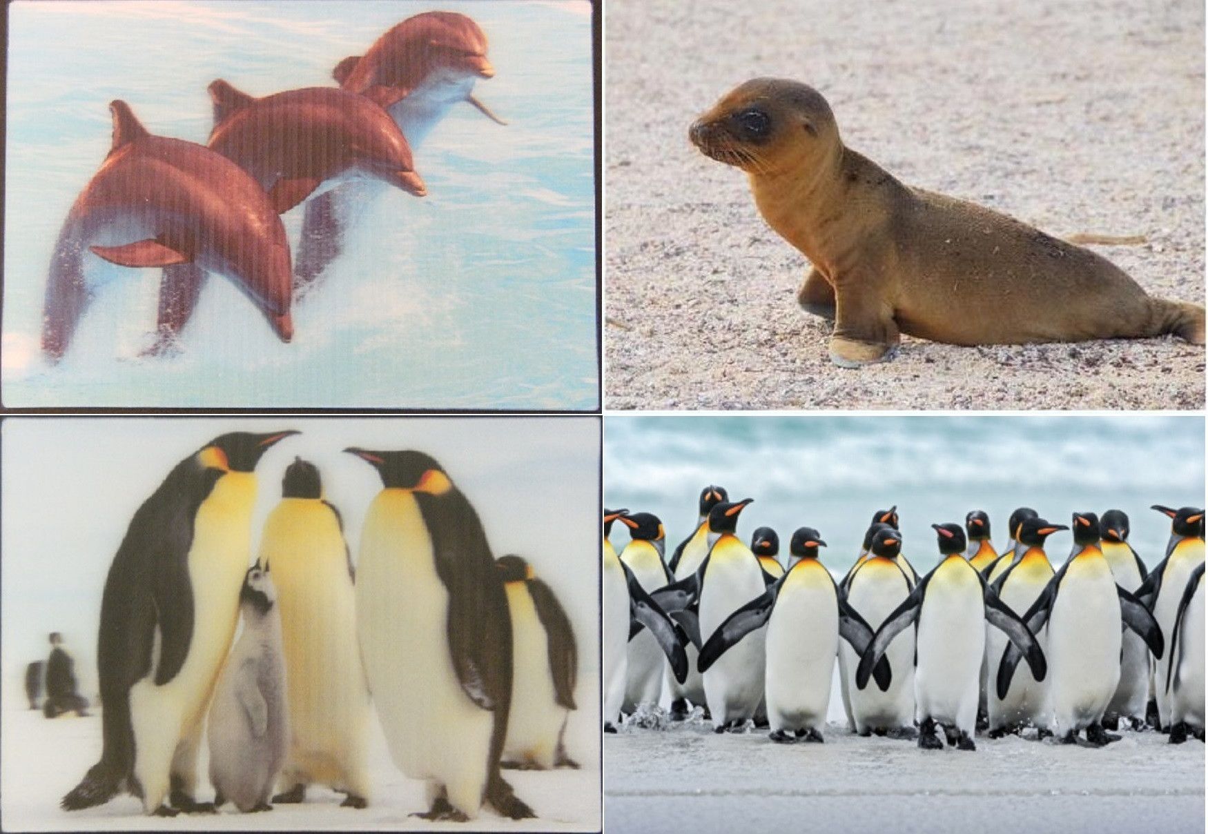 3 D Ansichtskarte Delfin Pinguin Frosch Postkarte Wackelkarte Hologrammkarte
