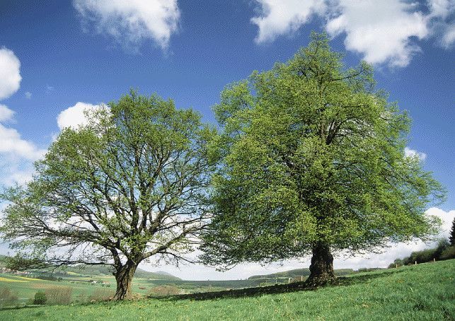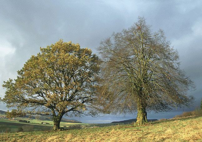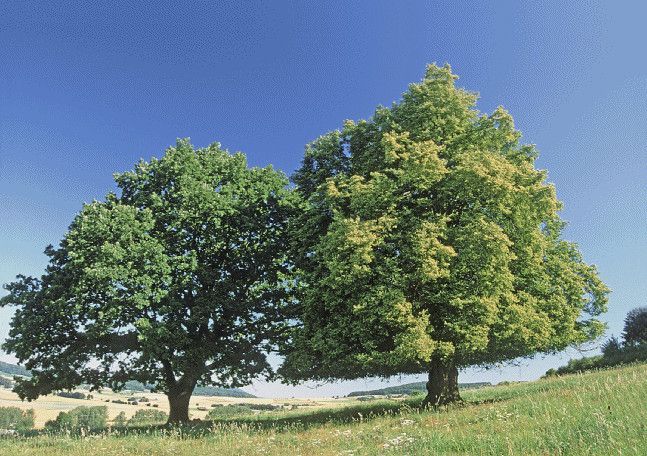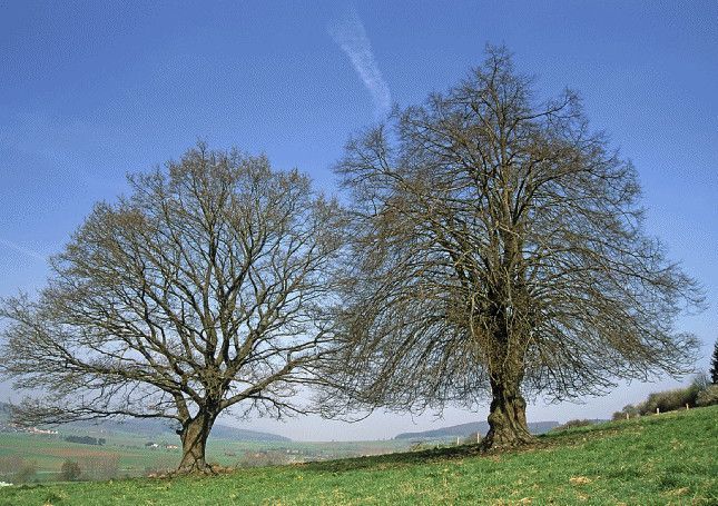 3 D Ansichtskarte Eiche + Linde, Postkarte Wackelkarte Hologrammkarte, Baum Bäume