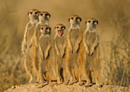 3 D Ansichtskarte freche Erdmännchen, Postkarte Wackelkarte Hologrammkarte Tier