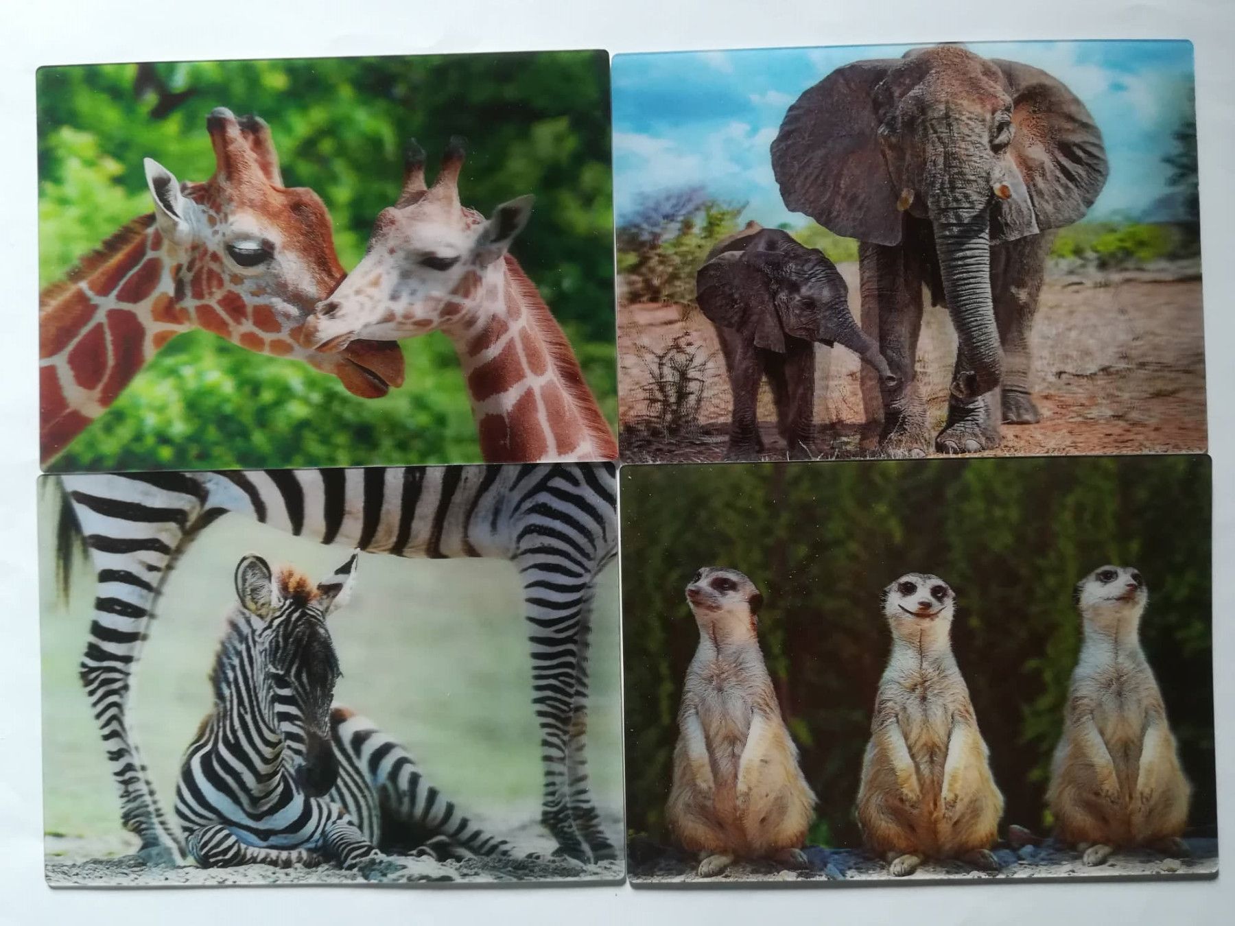 Schöning 3 D Ansichtskarte Giraffen Zebra Elefant Erdmann Postkarte Wackelkarte Hologrammkarte