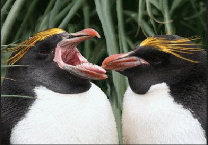 3 D Ansichtskarte Goldschopfpinguine, Postkarte Wackelkarte Hologrammkarte Pinguine