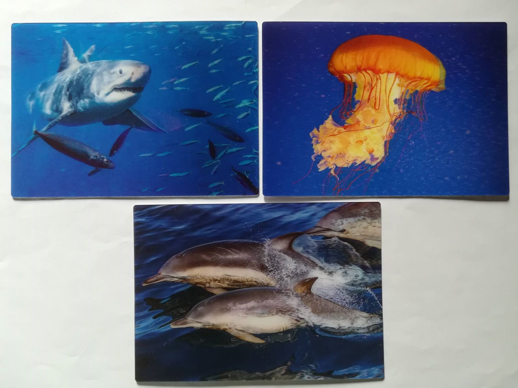 Schöning 3 D Ansichtskarte Hai o. Qualle Delfine Postkarte Wackelkarte Hologrammkarte Tiere