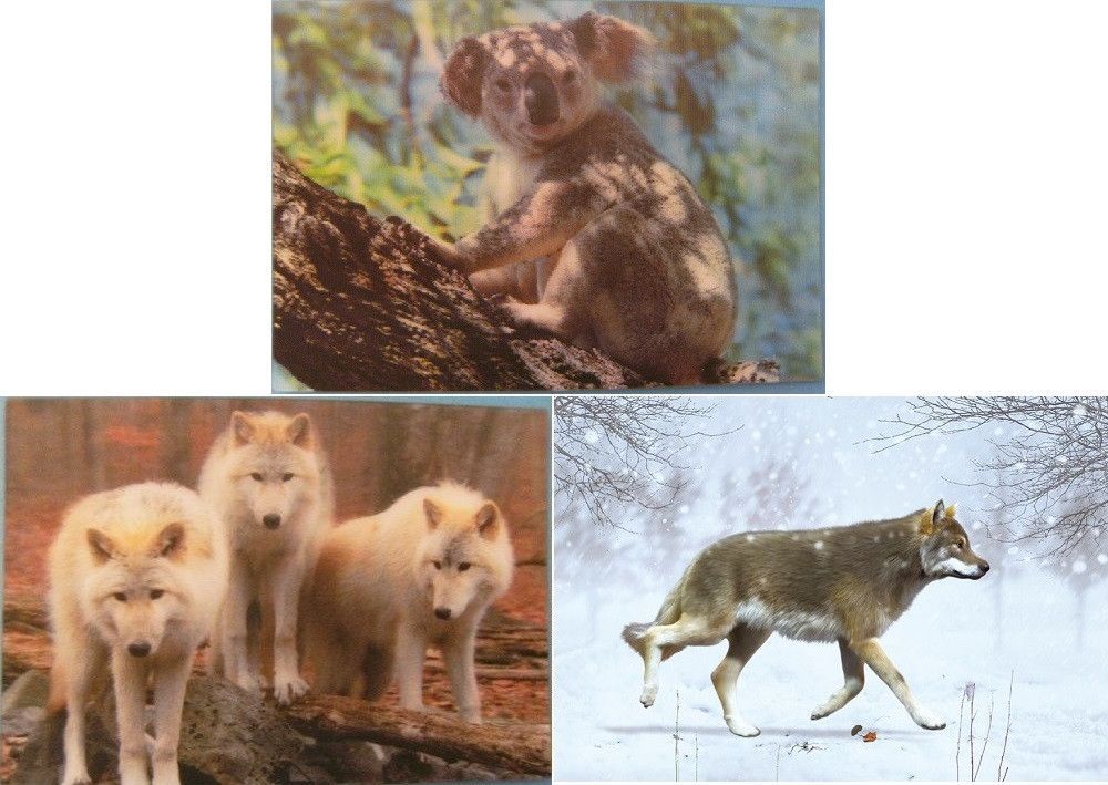 3 D Ansichtskarte Koala Wolf Wölfe Postkarte Wackelkarte Hologrammkarte Tiere Zoo