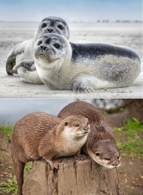 3 D Ansichtskarte Robben Otter Wasser Postkarte Wackelkarte Hologrammkarte Tiere Meer