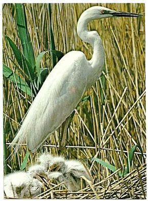• Ansichtskarte "SILBERREIHER" aus Band II des Werkes "Europäische Vögel" (Belser)
