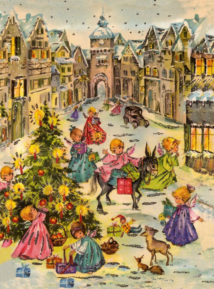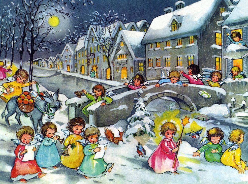 3 D Ansichtskarte Weihnachten Kinder Winter Postkarte Wackelkarte Hologrammkarte