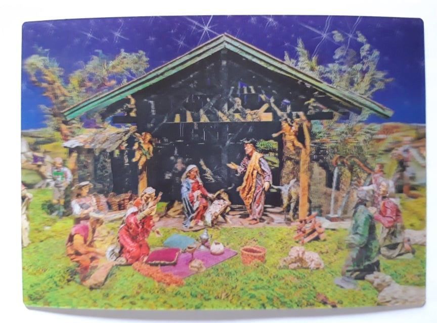 Schöning 3 D Ansichtskarte Weihnachten Postkarte Wackelkarte Hologrammkarte Krippe Engel Kerze