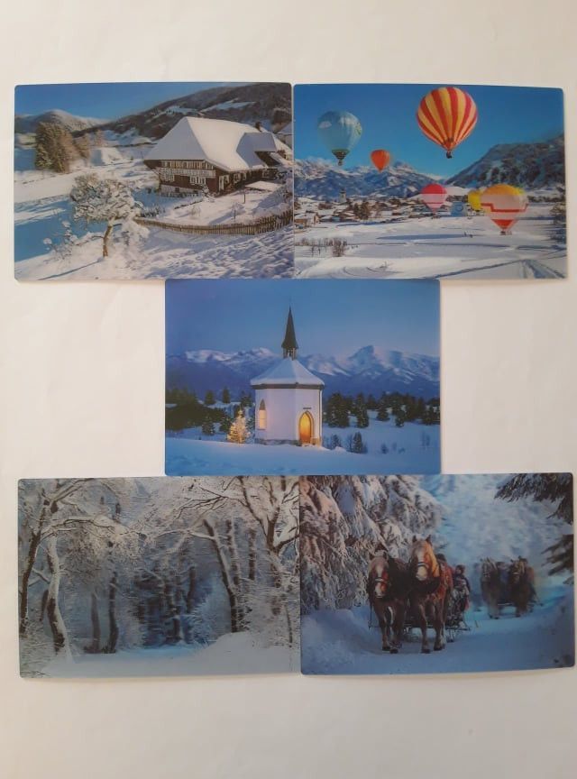 Schöning 3 D Ansichtskarte Winter Schnee Postkarte Wackelkarte Hologrammkarte Haus Ballon
