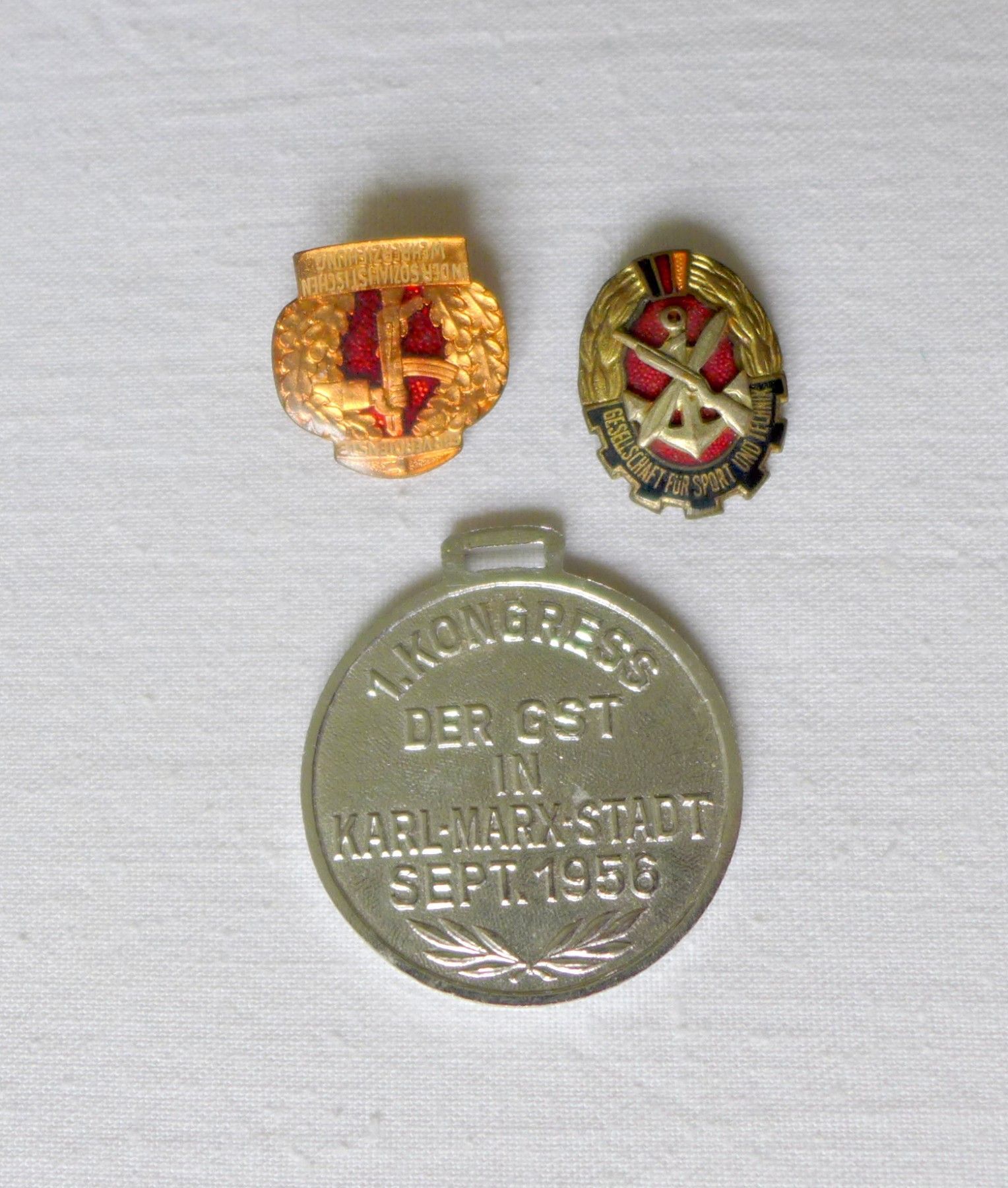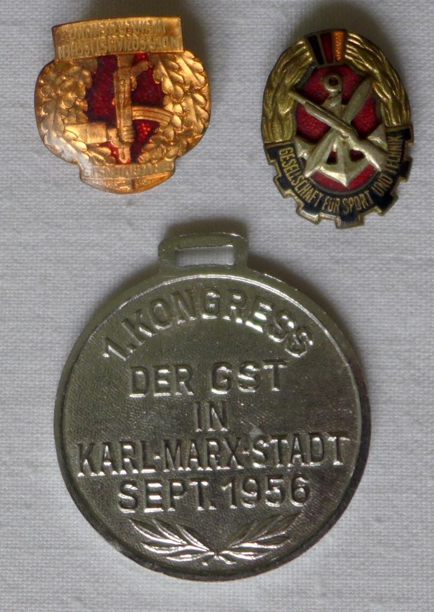3 DDR GST Abzeichen Für Verdienste Wehrerziehung 1. Kongress Karl Marx Stadt 1956