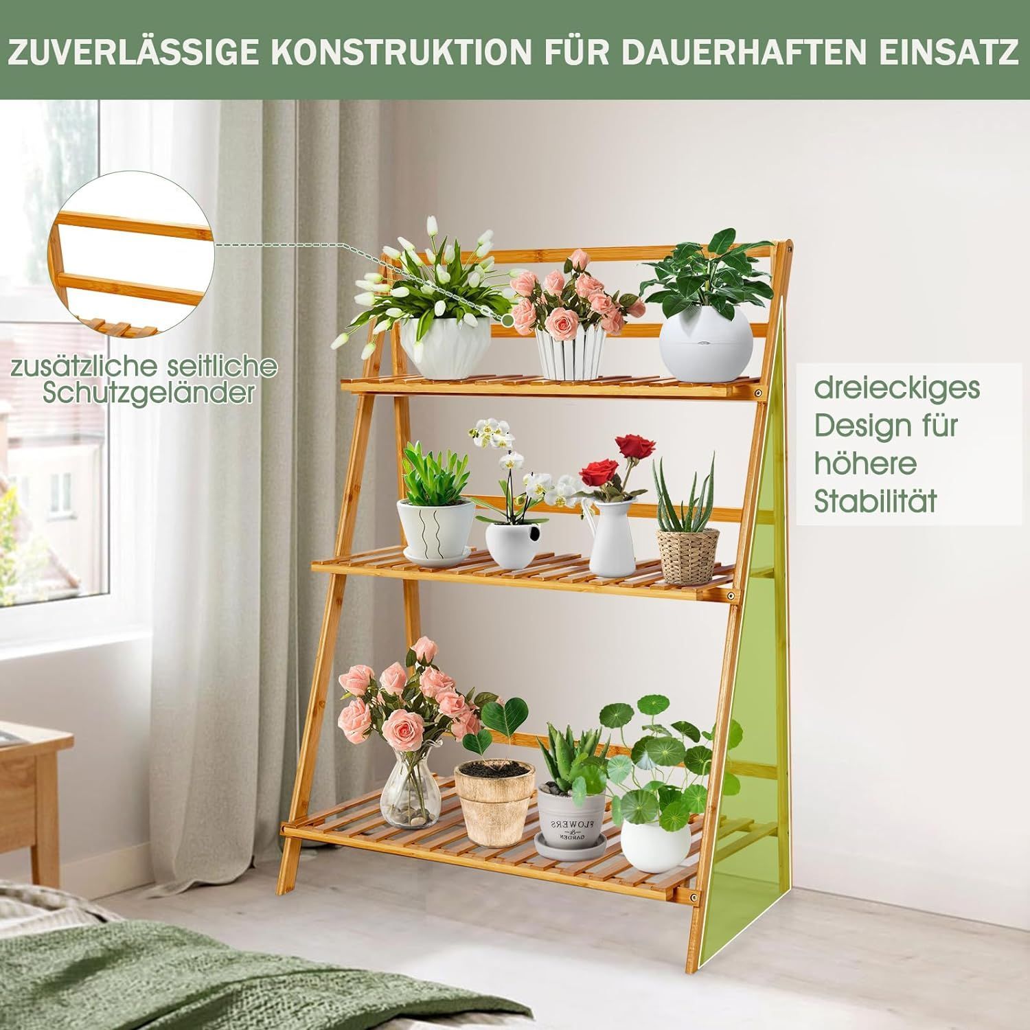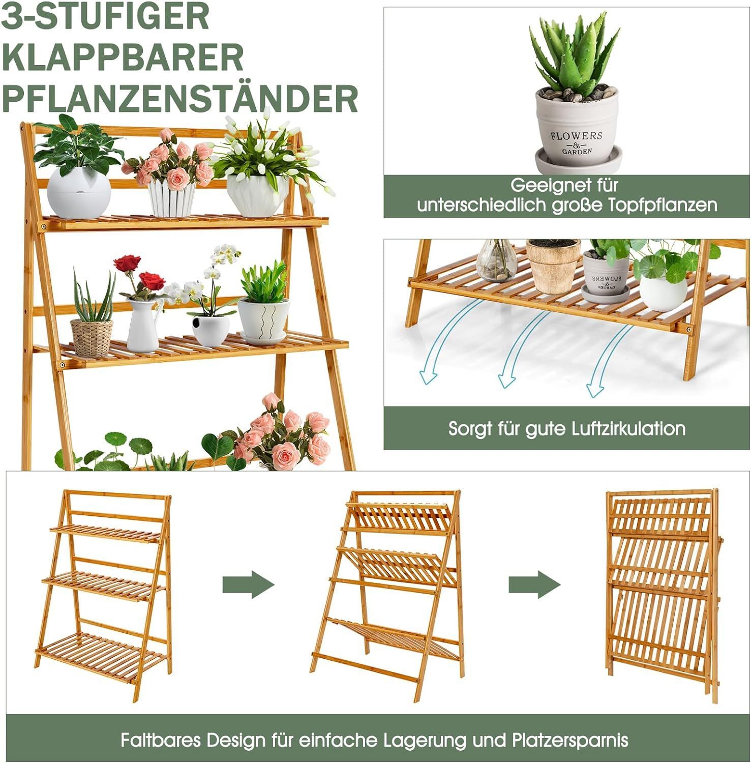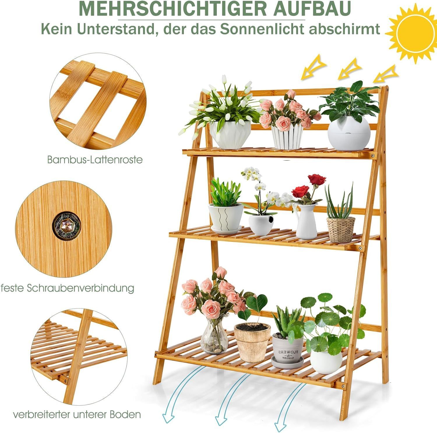 3 Ebenen Pflanzenleiter klappbar, Pflanzenregal Bambus, Blumenregal Blumenleiter