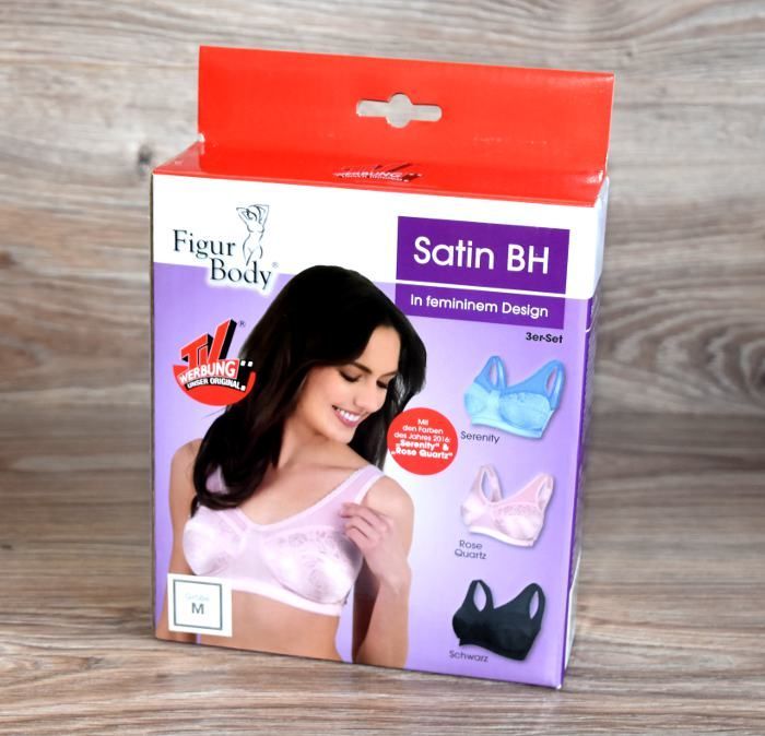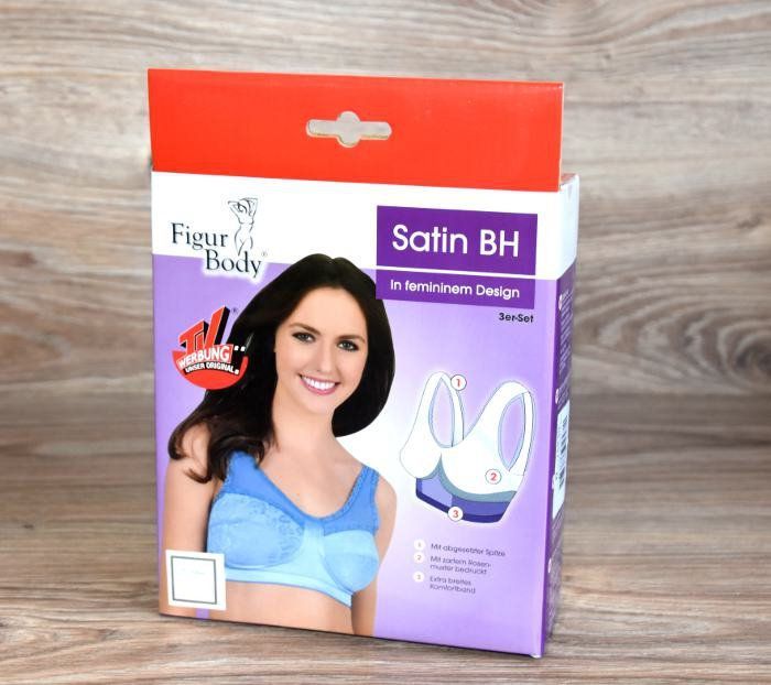 3-er Set Satin BH Gr. M-3XL Bunt FIGUR BODY Dessous Damen Unterwäsche NEU *