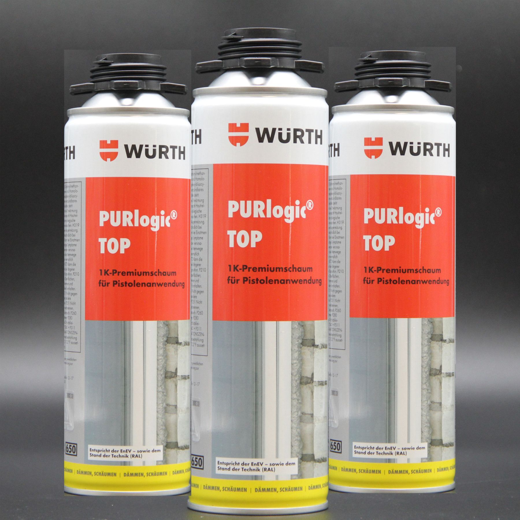 3 er Set - WÜRTH Purlogic TOP 1 K Pistolenschaum Betongrau (Bauschaum, Montageschaum)