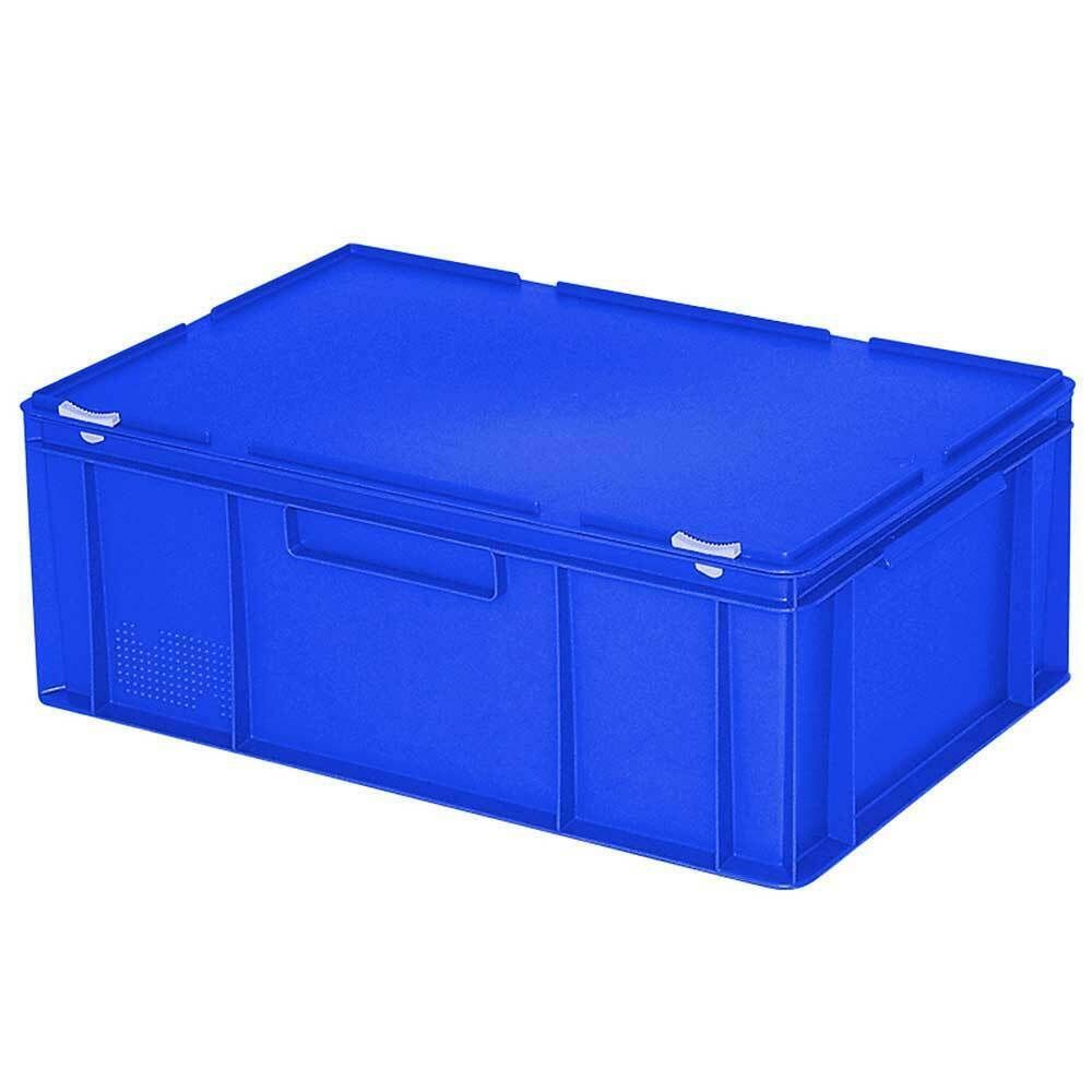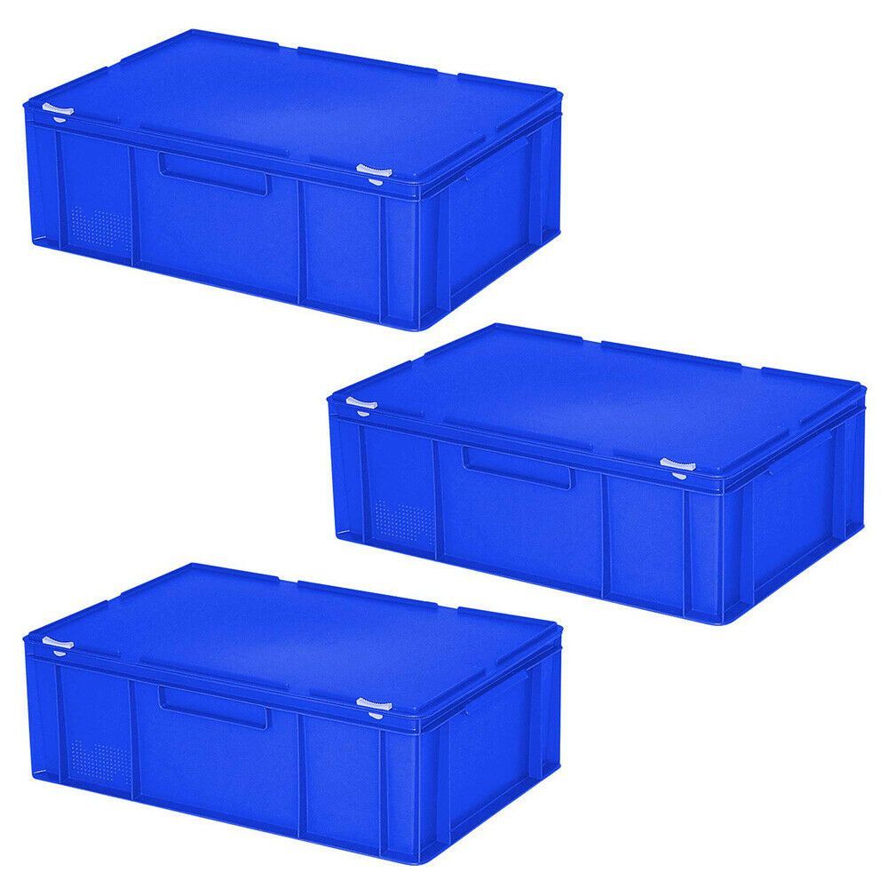 3 Eurobehälter mit Deckel, stapelbar, LxBxH 600x400x230 mm, 43 Liter, blau, PE-HD