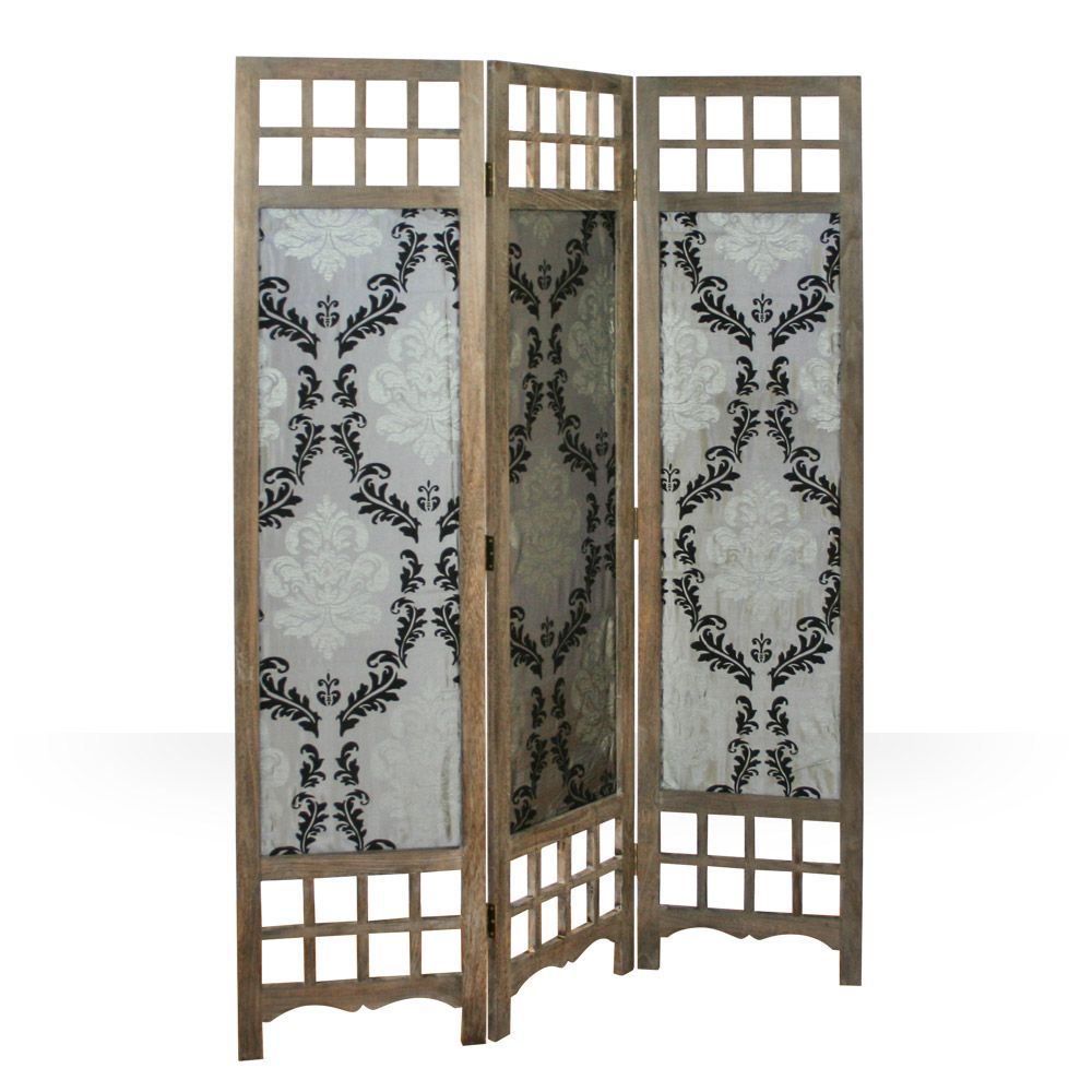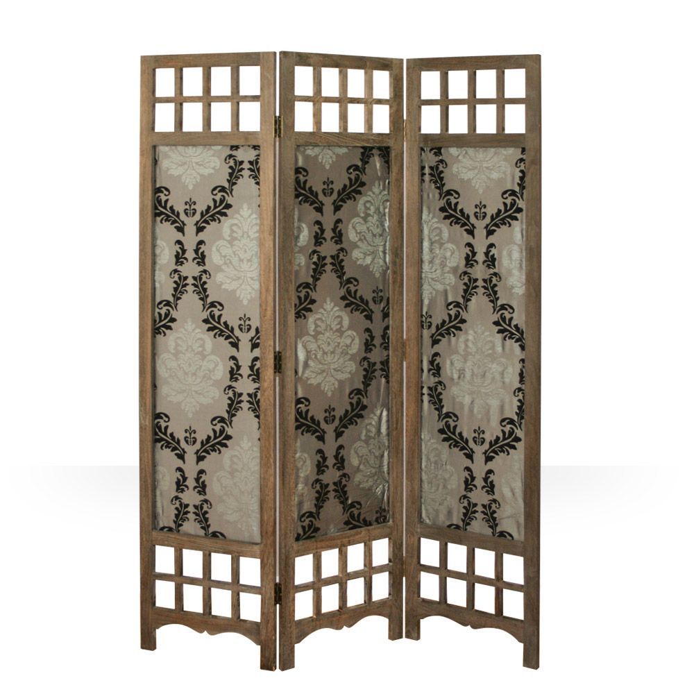 3 fach Paravent Raumteiler Holz Trennwand braun grau Muster Stoff spanische Wand 976