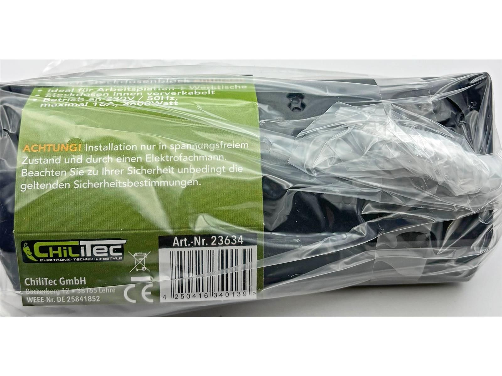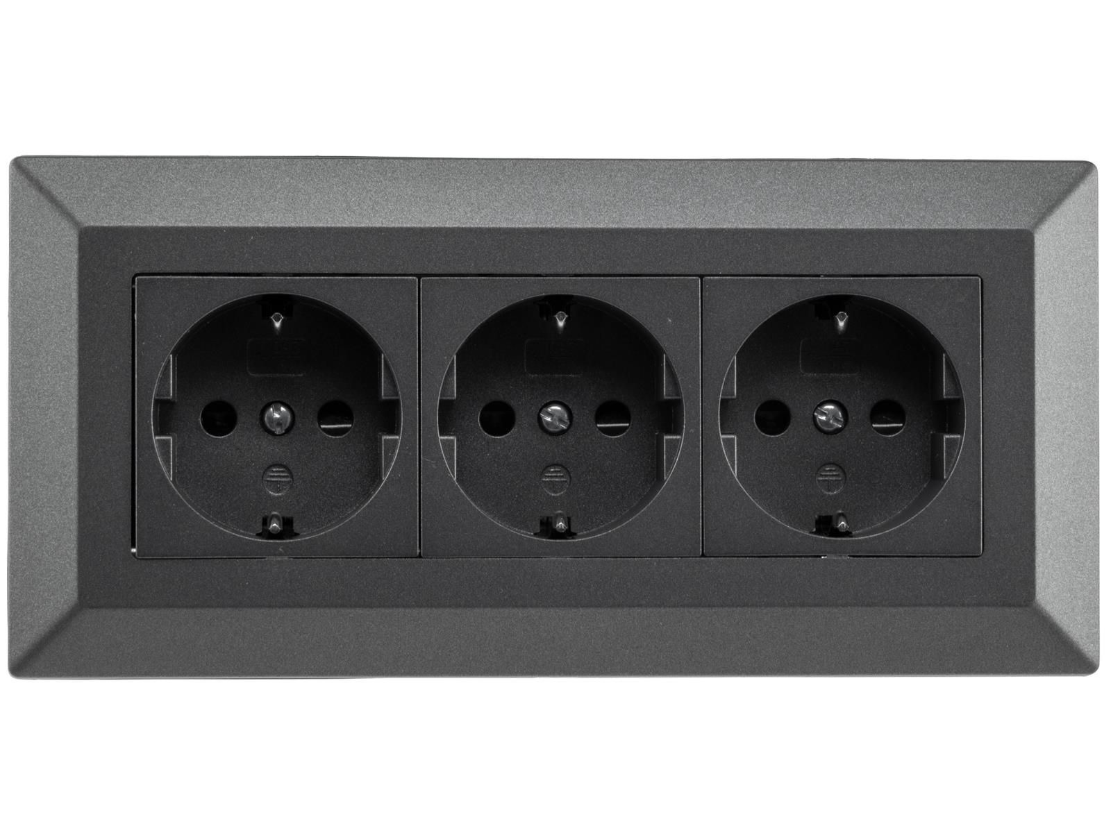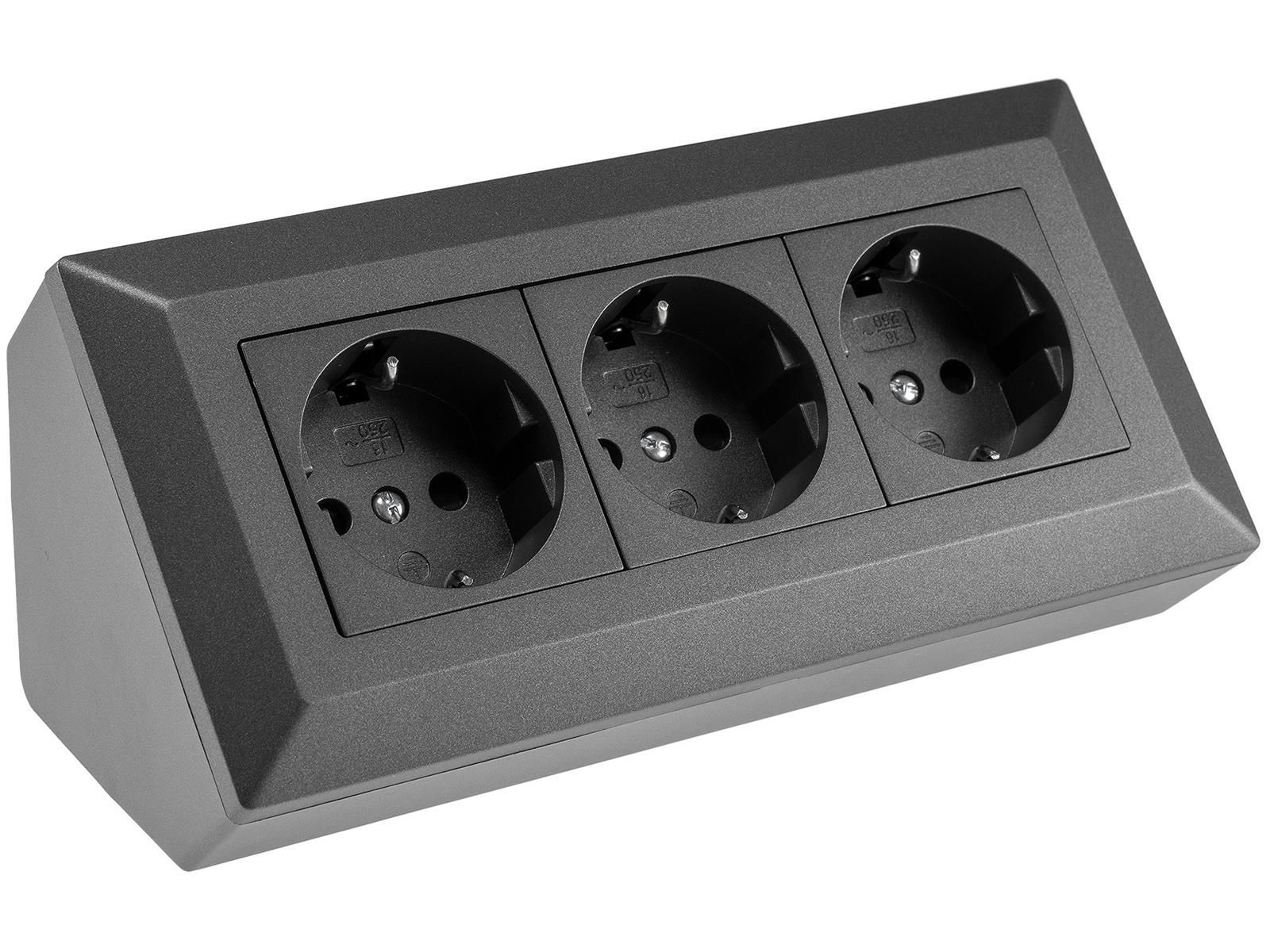 ChiliTec 3-fach Steckdosenblock, anthrazit 250V / 16A, Aufbaumontage