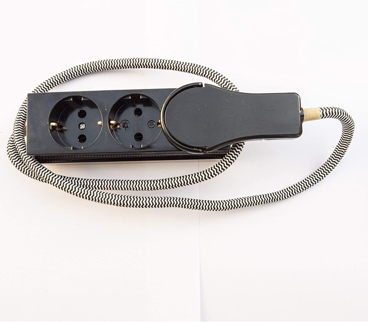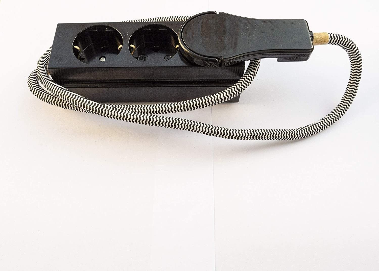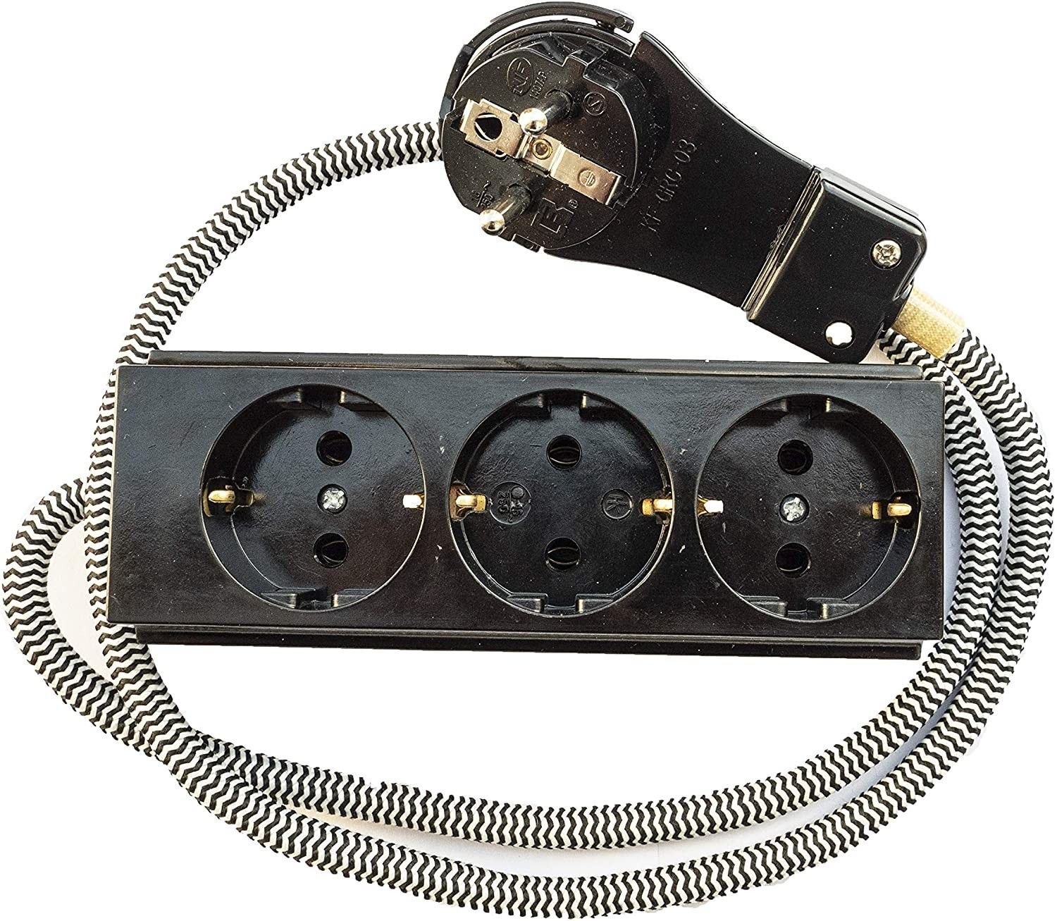 3-fach Steckdosenleiste aus Bakelit bruckig Messing mit Textilkabel 1M Schwarz