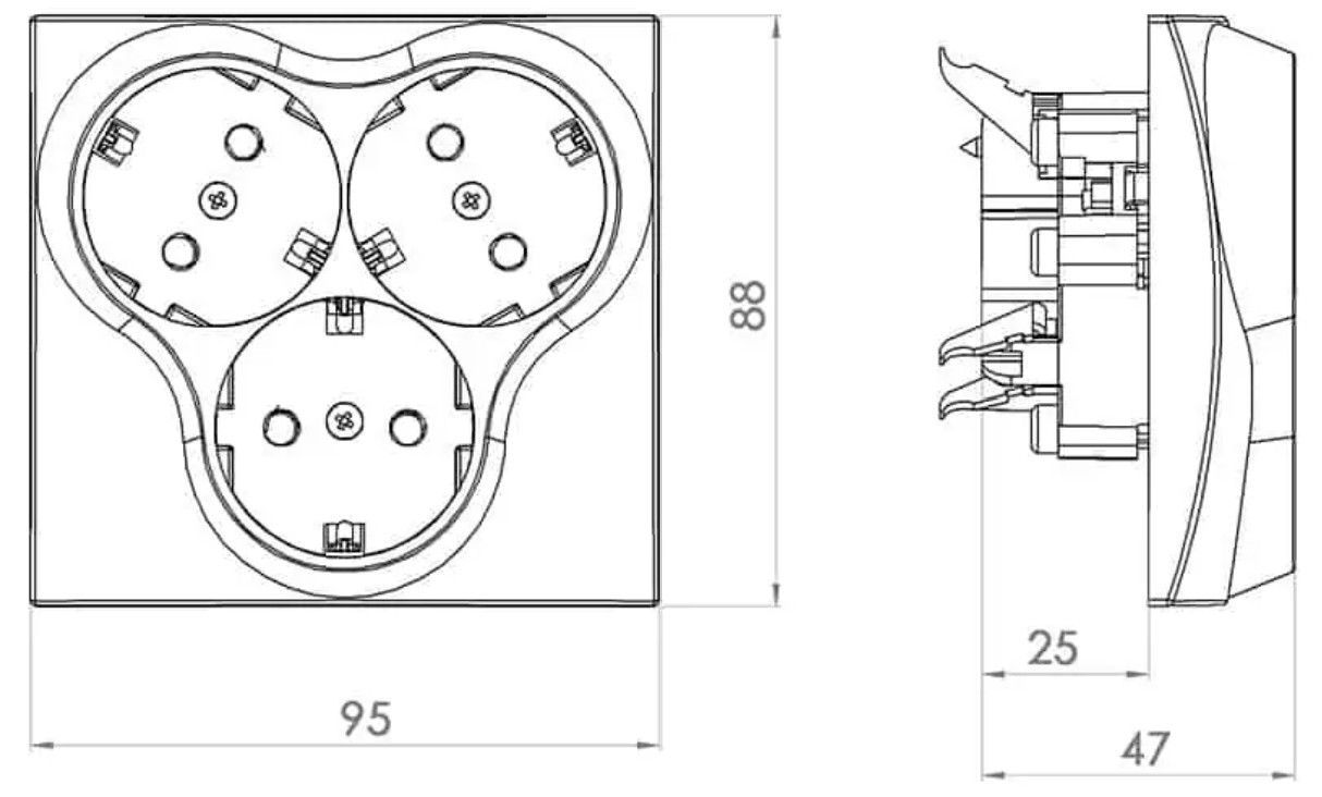 3-fach Unterputz Schukosteckdosen Scutzkontakt Steckdose standart Einbau Creme 5310
