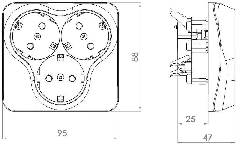 3-fach Unterputz Schukosteckdosen Scutzkontakt Steckdose standart Einbau Weiß