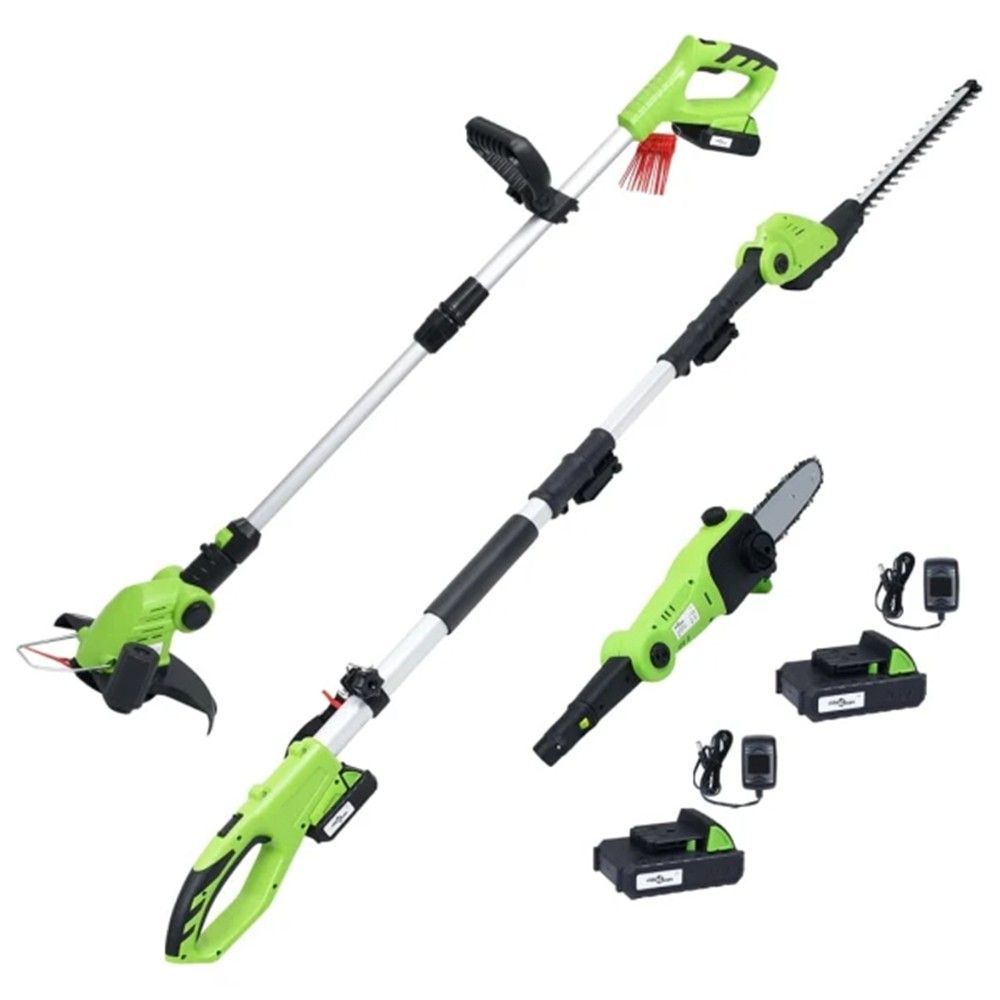 3-in-1 Akku-Gartengeräte-Set-Teleskop-Heckenschere Hochentaster, Rasentrimmer