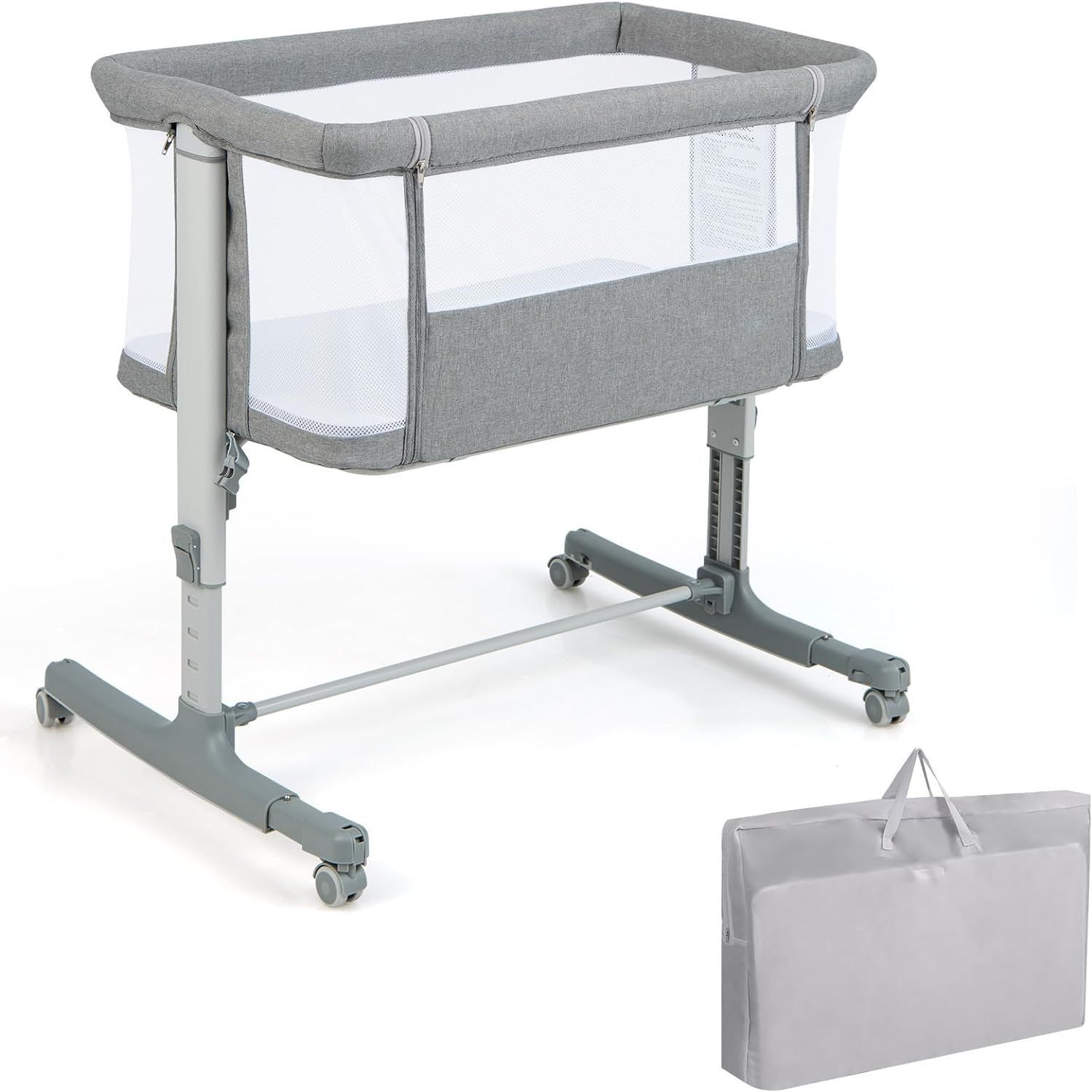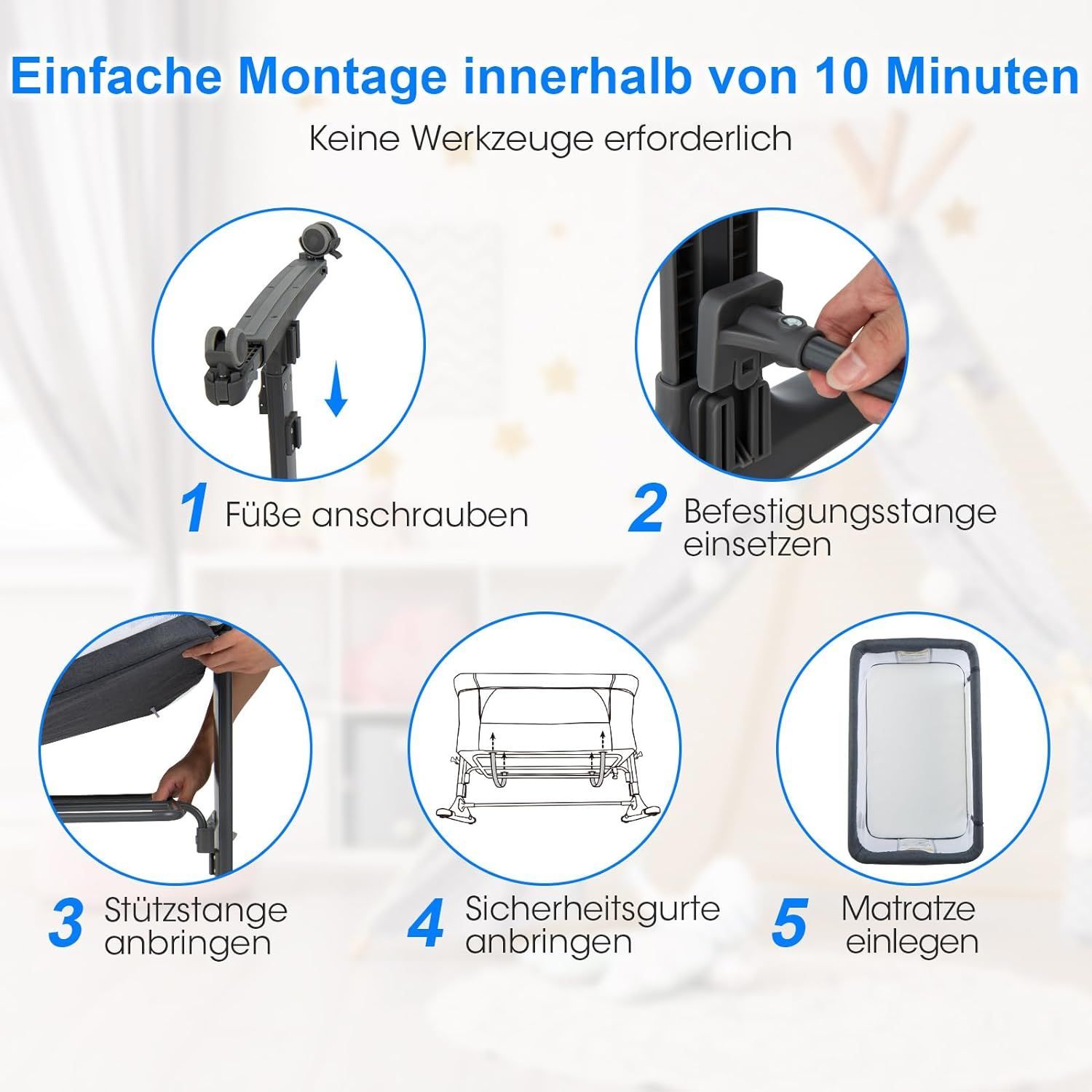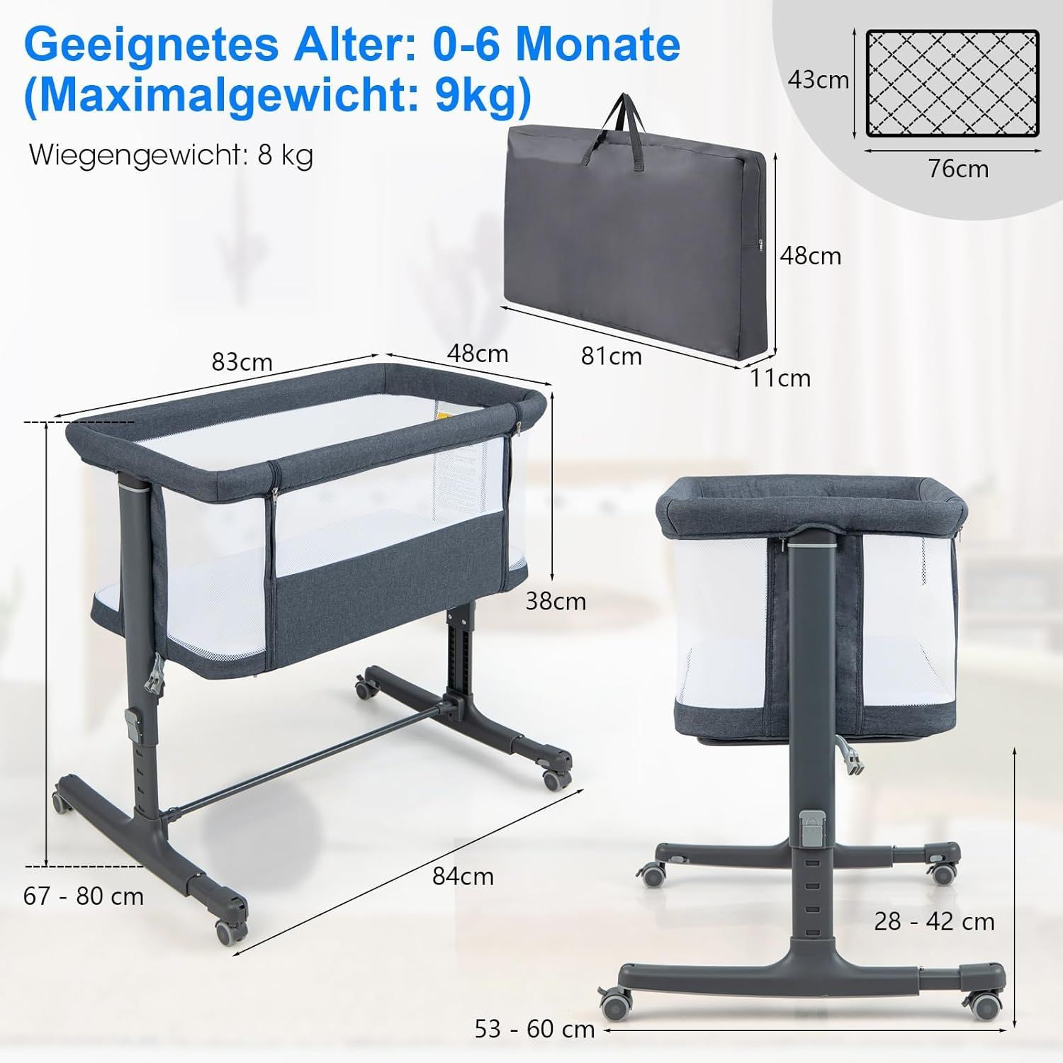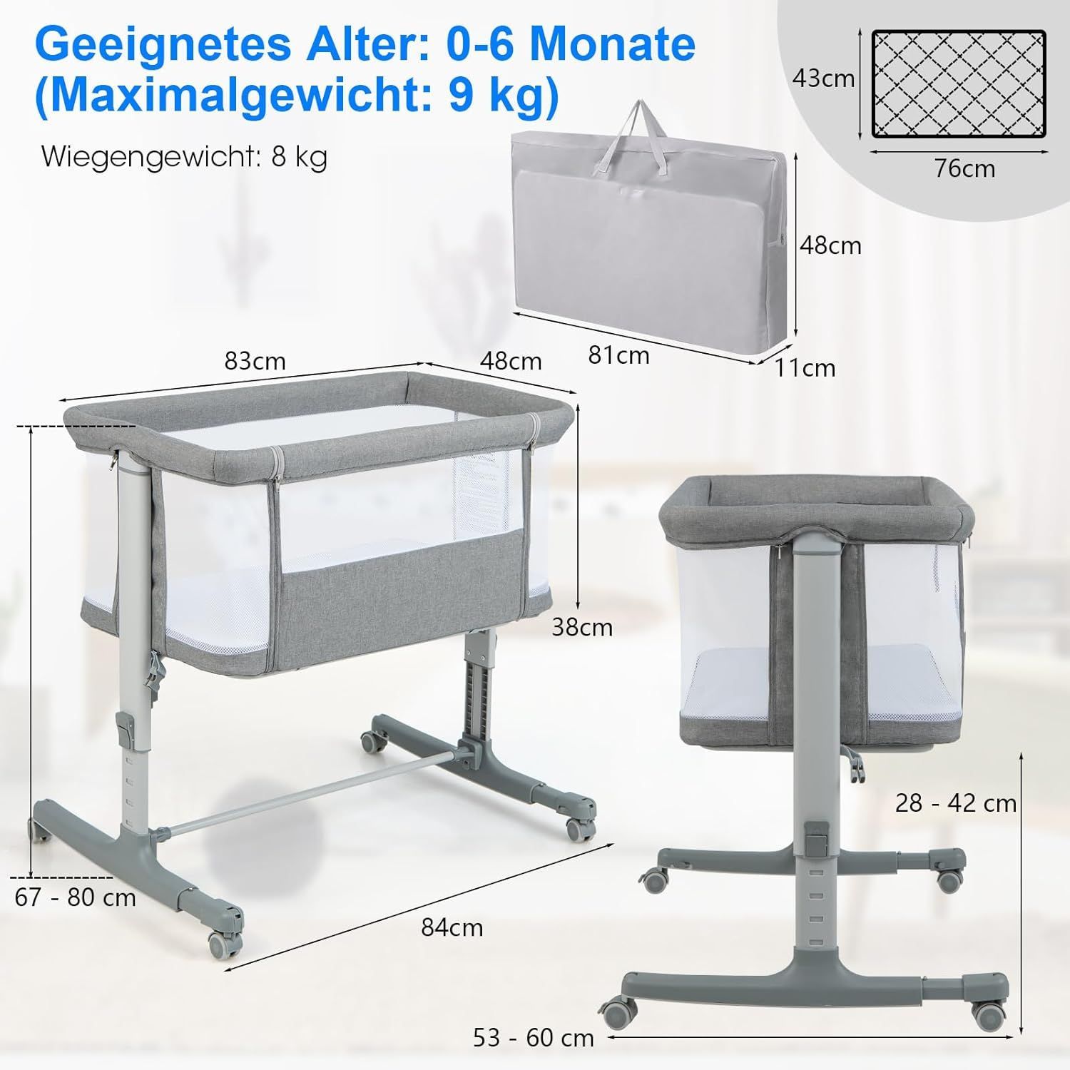 3 in 1 Beistellbett, Reisebett Baby mit Matratze, Babybett & Babywiege & Kinderbett