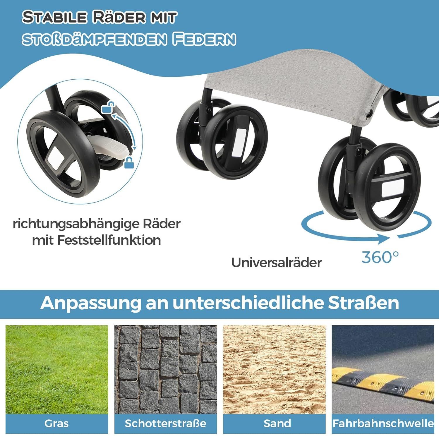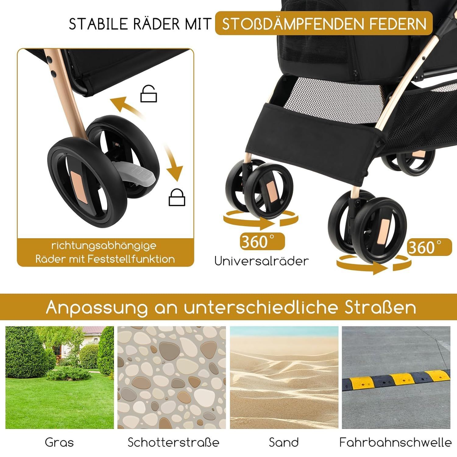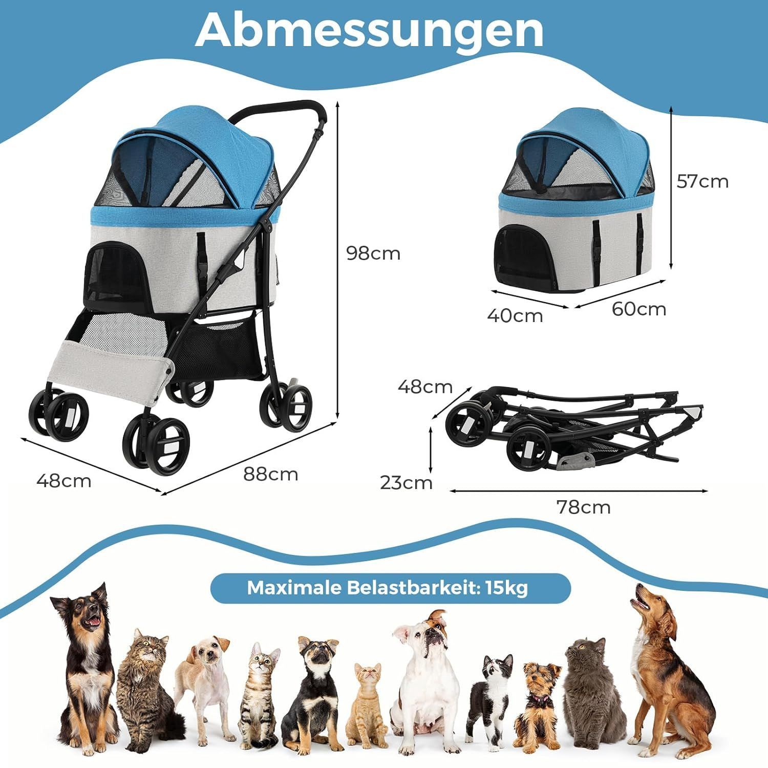 3 in 1 Hundewagen, Hundebuggy klappbar, bis 15 kg, Haustierwagen mit Netzfenstern