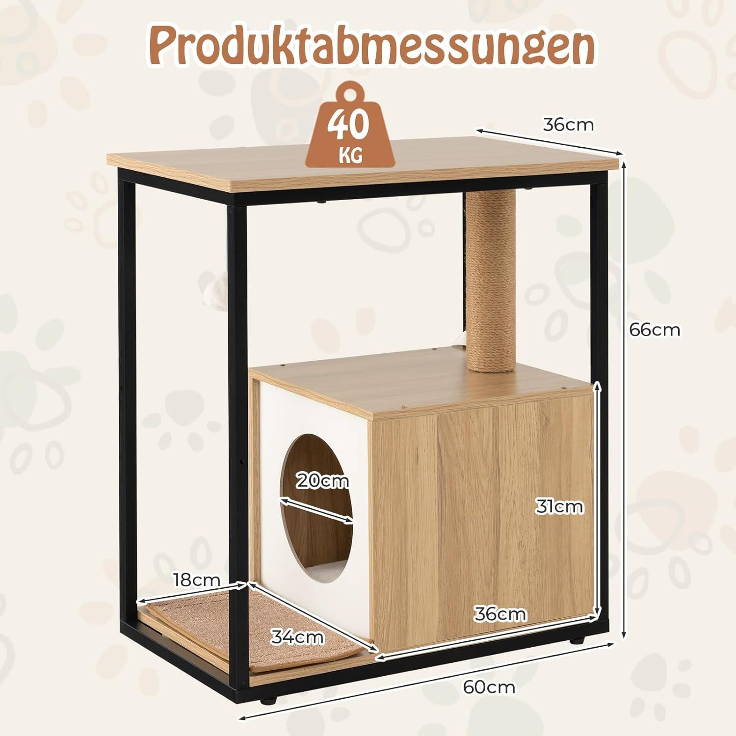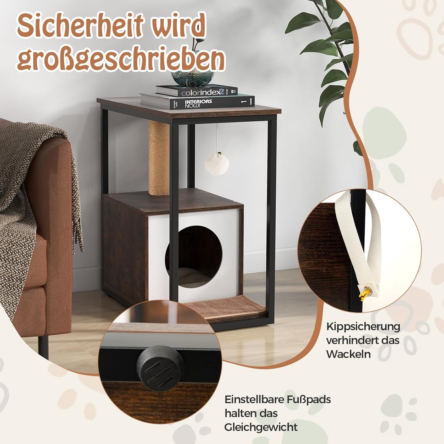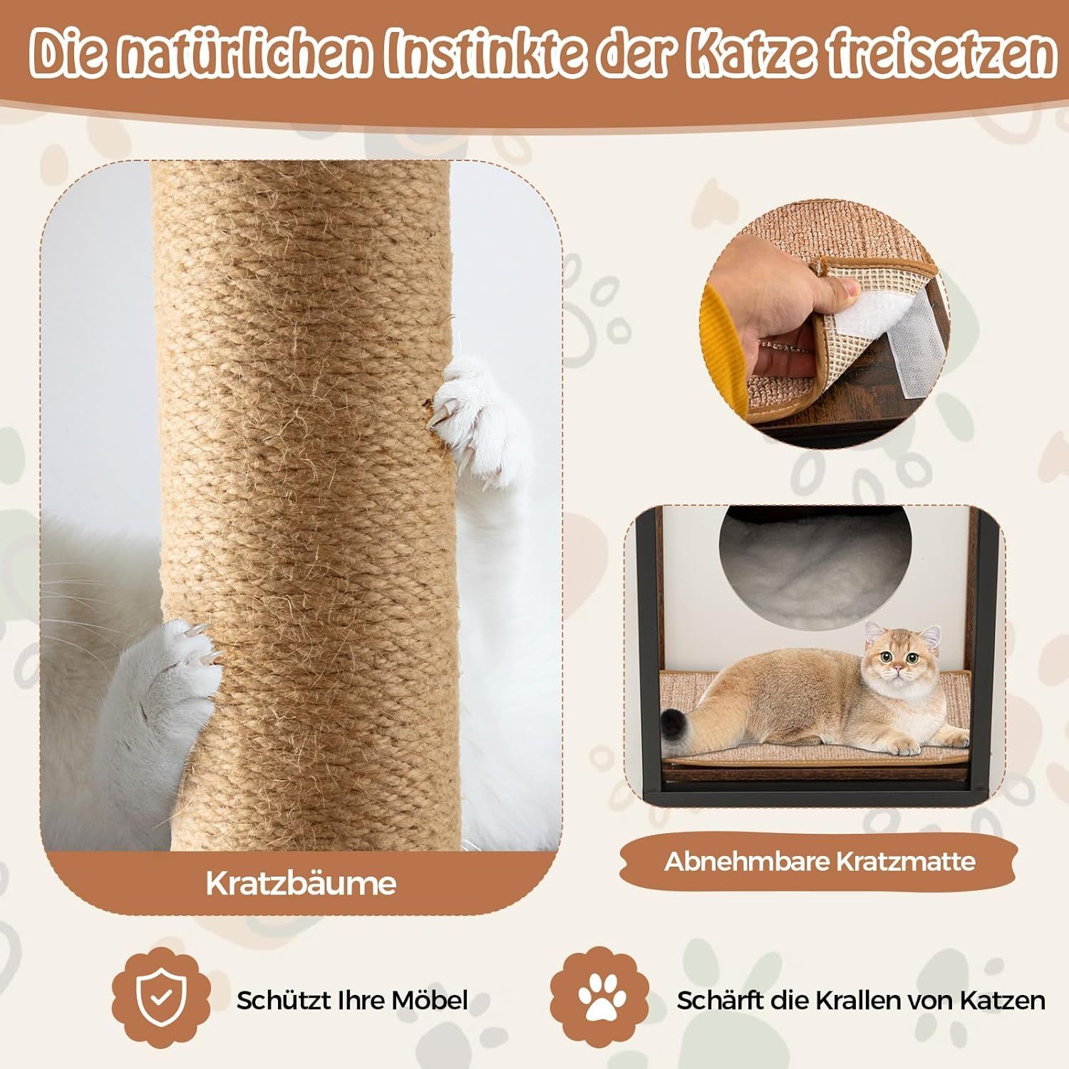 3 in 1 Katzenhaus & Kratzbaum & Beistelltisch, Katzenhöhle mit Abnehmbarer Kratzmatte