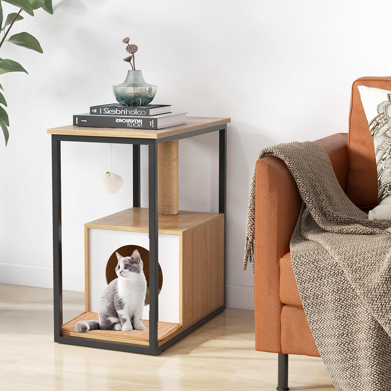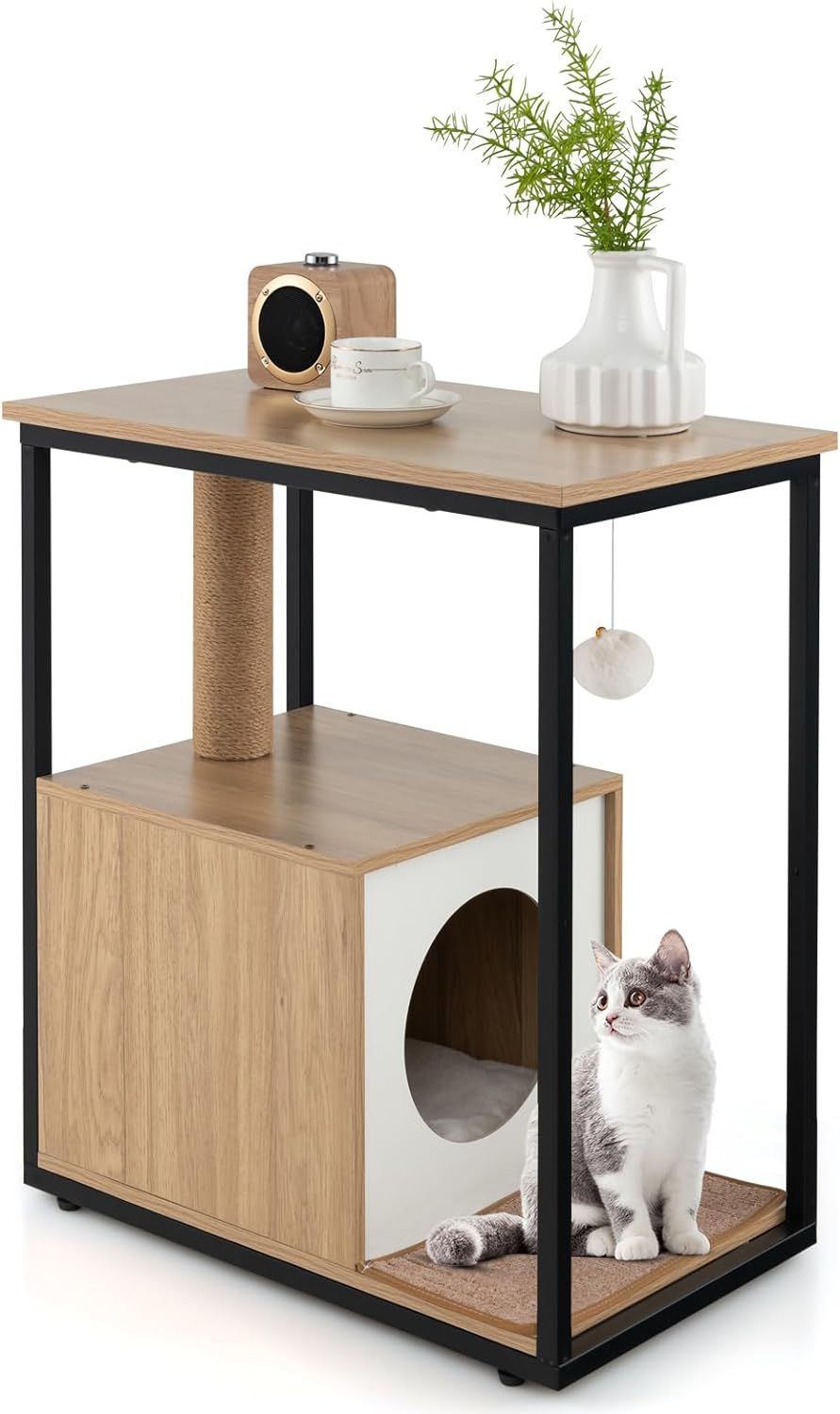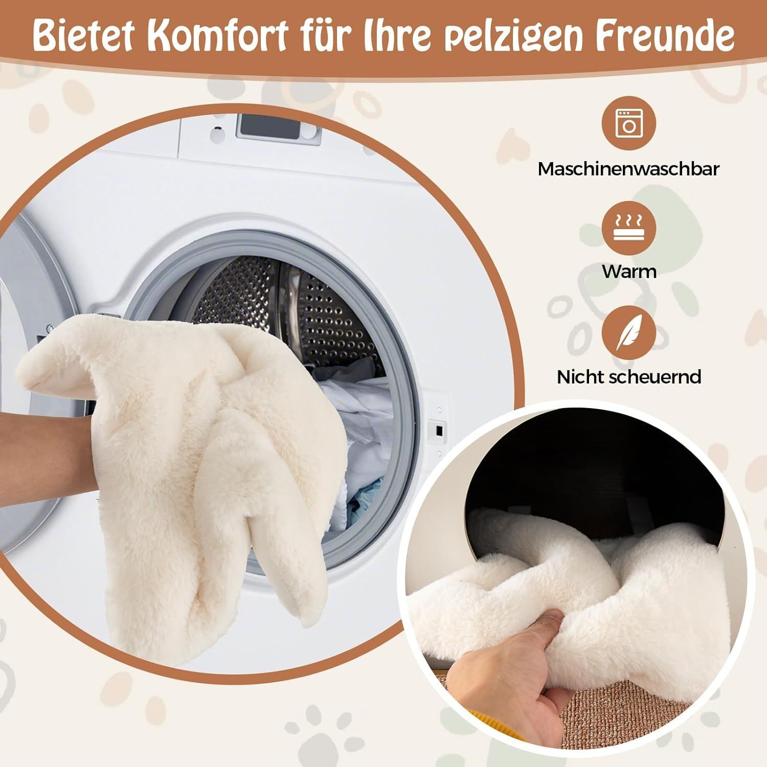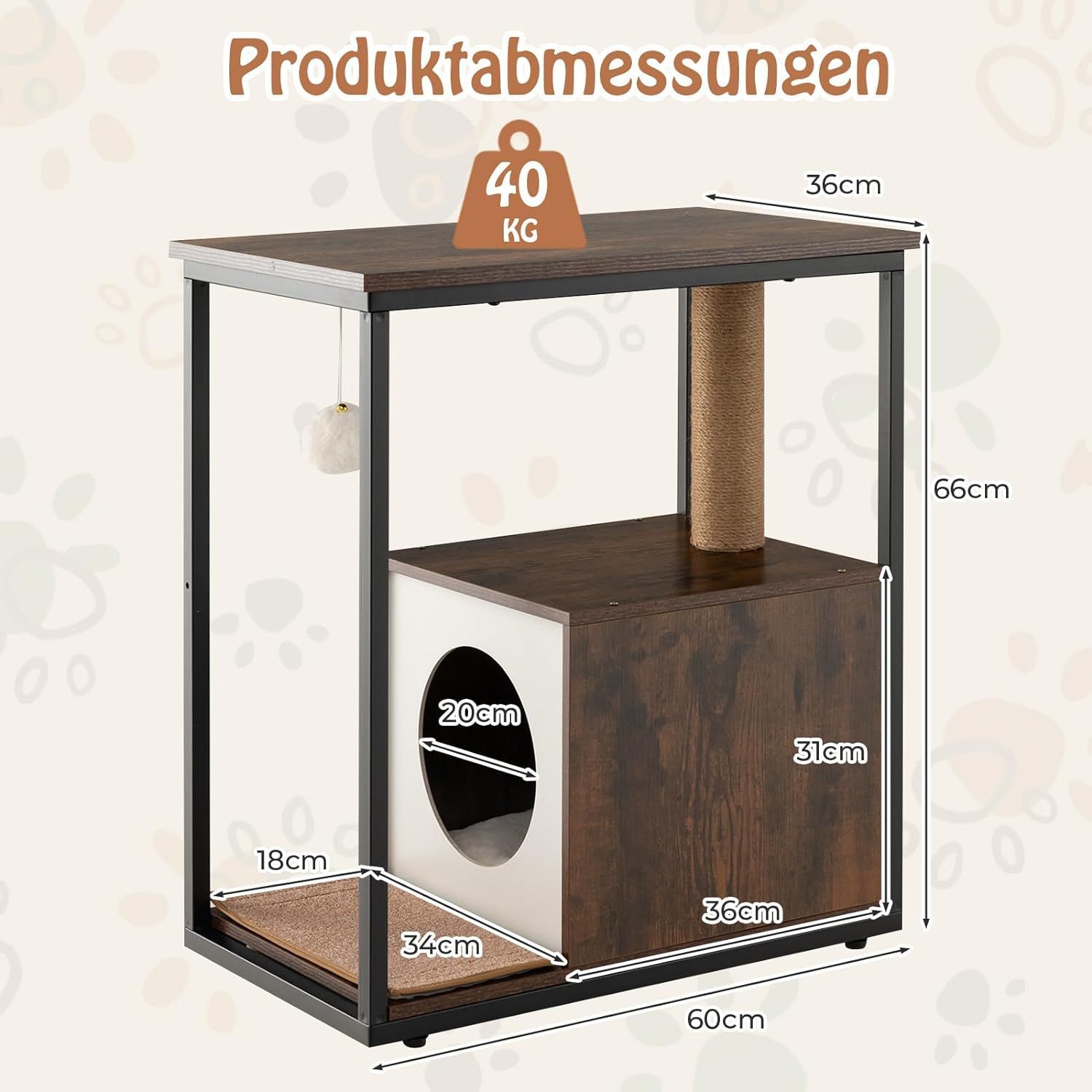 3 in 1 Katzenhaus & Kratzbaum & Beistelltisch, Katzenhöhle mit Abnehmbarer Kratzmatte