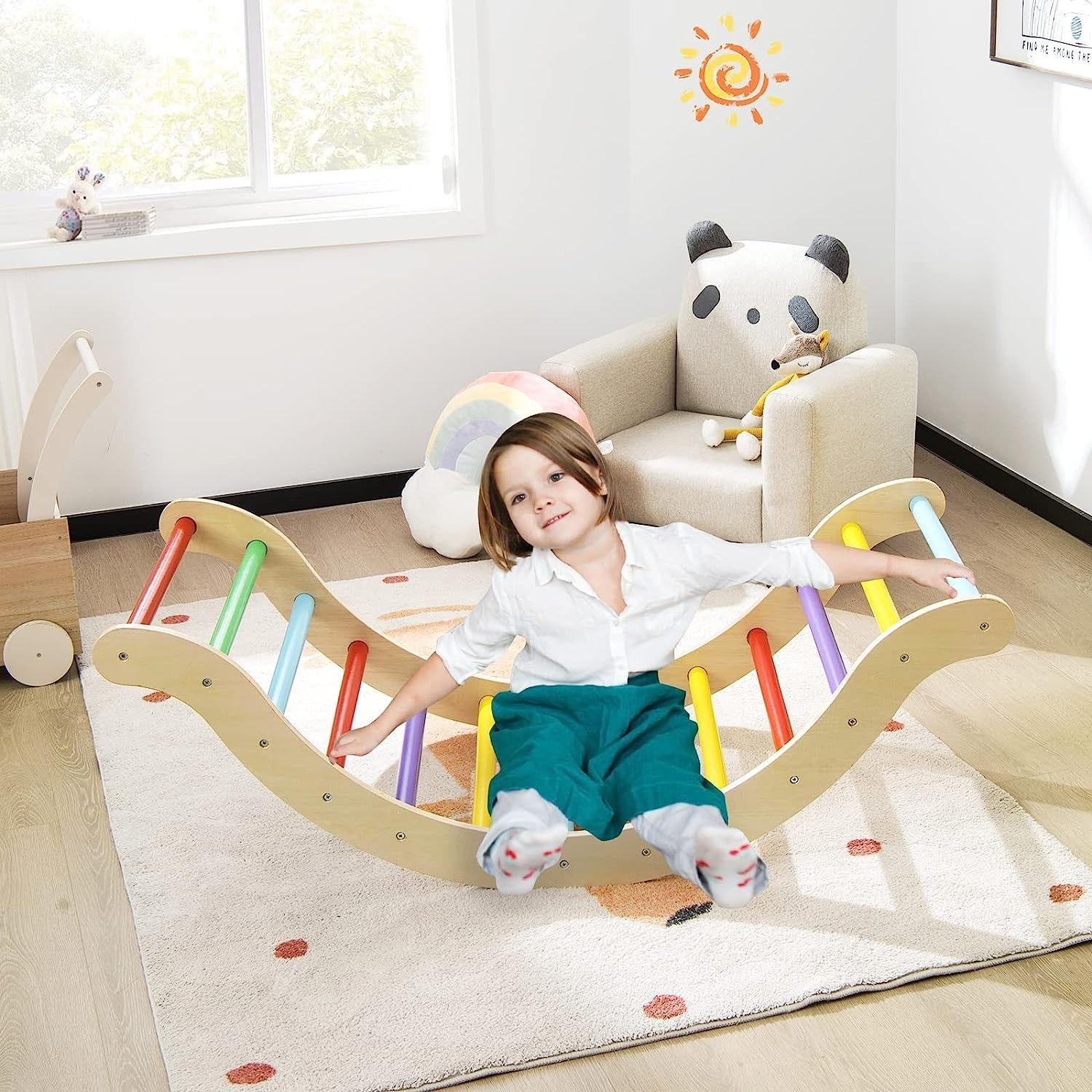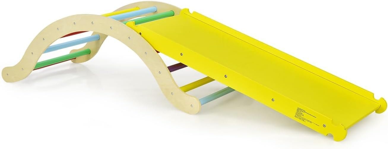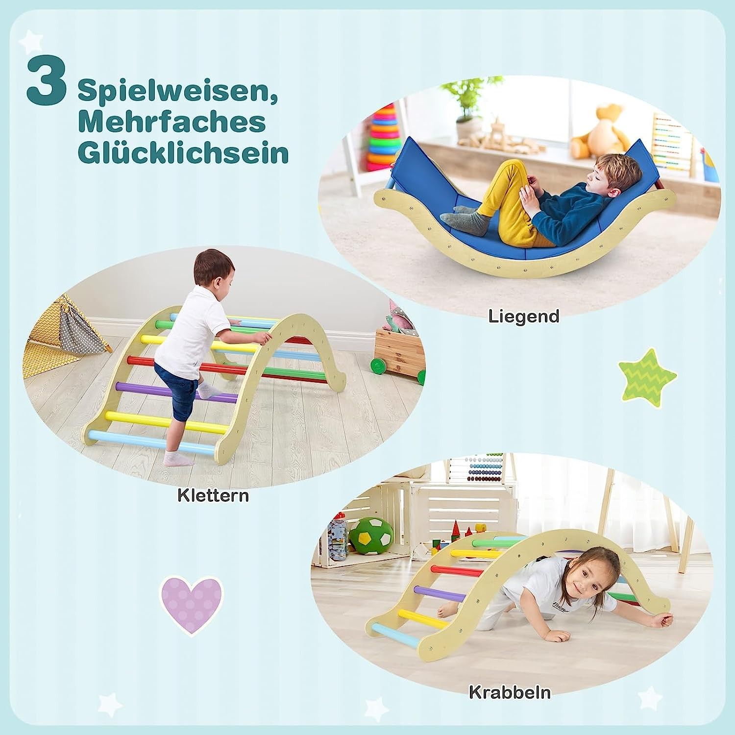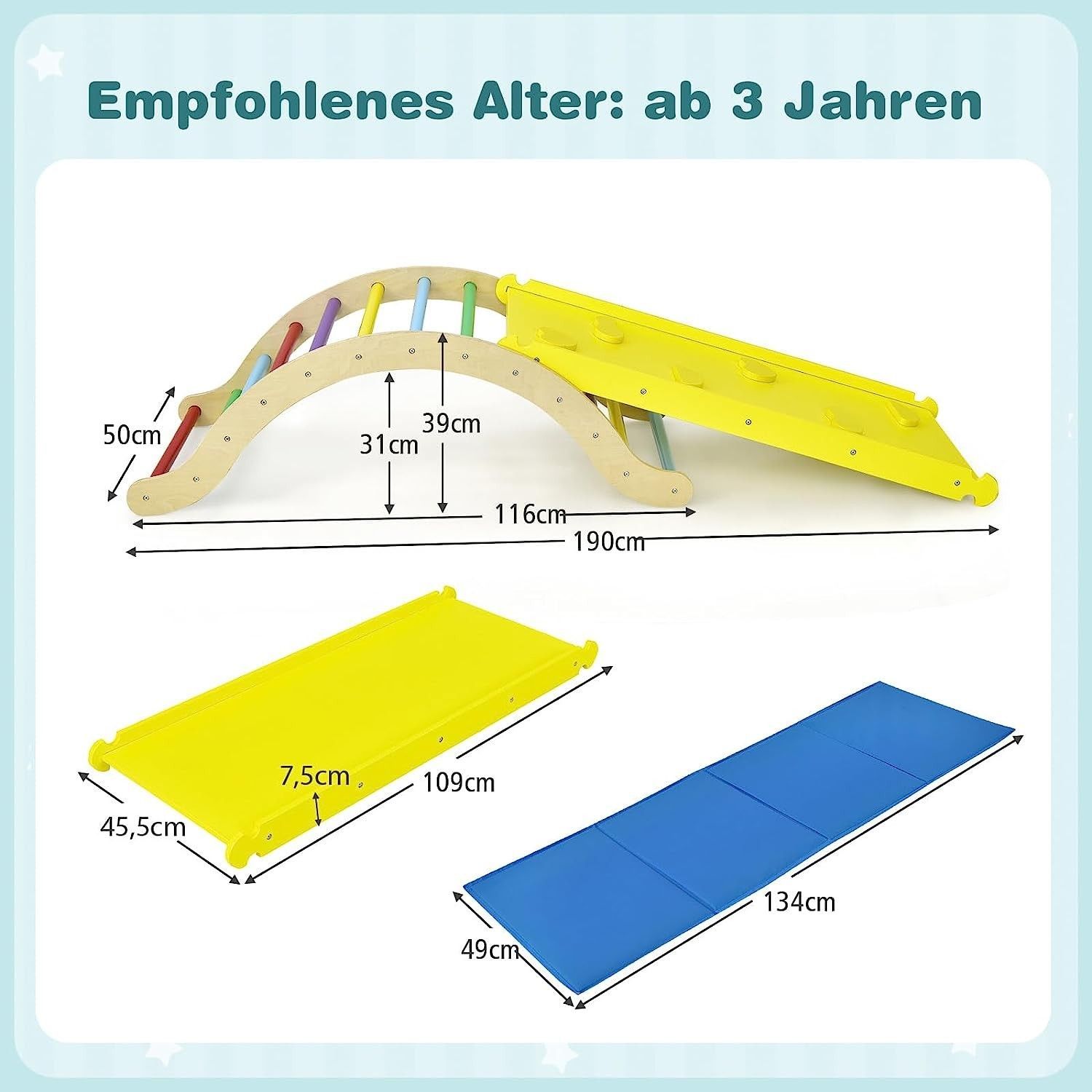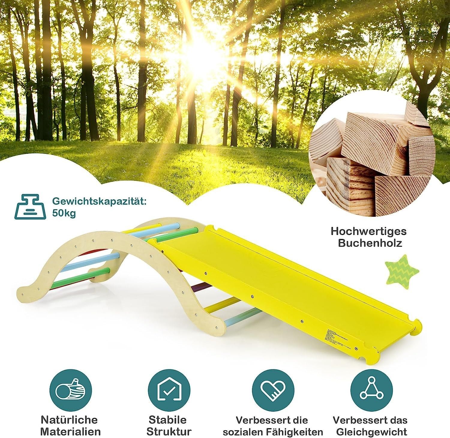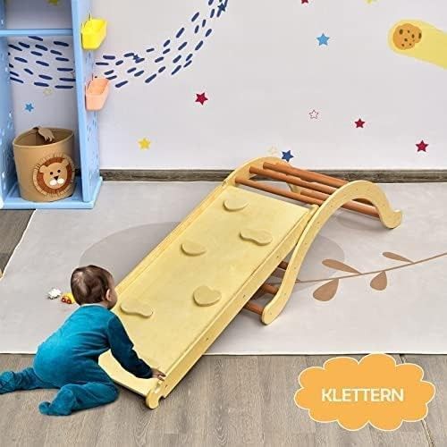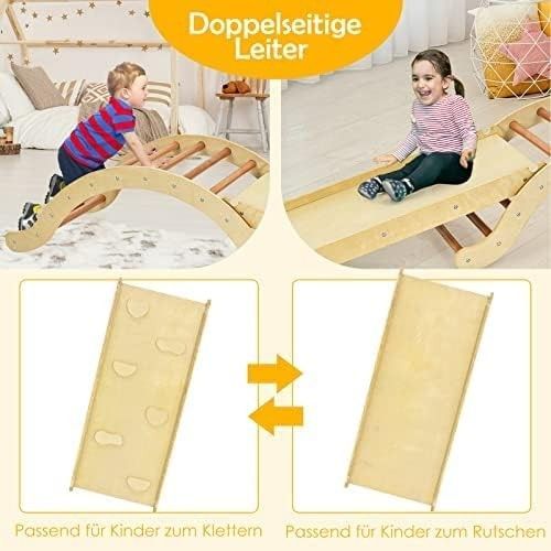3 in 1 Kinder Kletterleiter Set, Holz Kletterbogen Kletterdreieck, Kleinkinderrutsche
