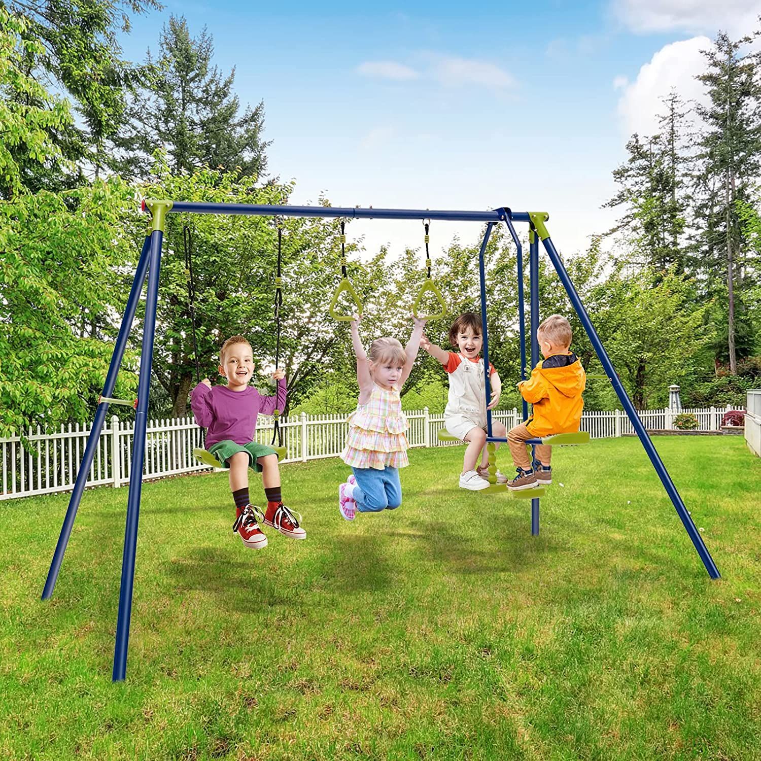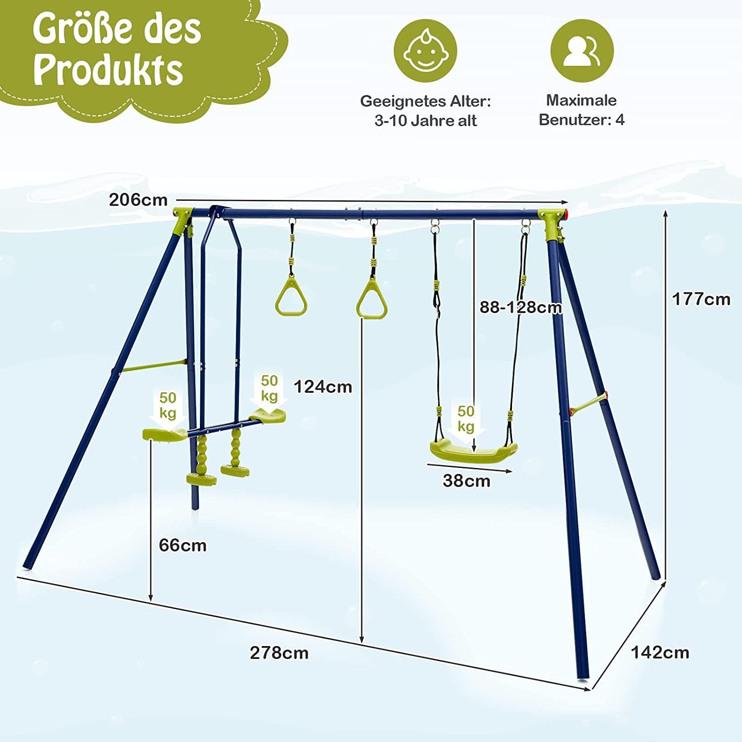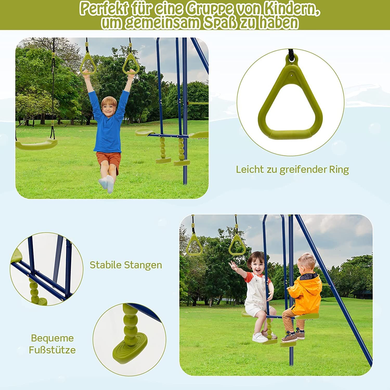3-in-1-Kinderschaukel mit Schaukel, Wippe und Turnringe, Schaukelgestell aus Metall