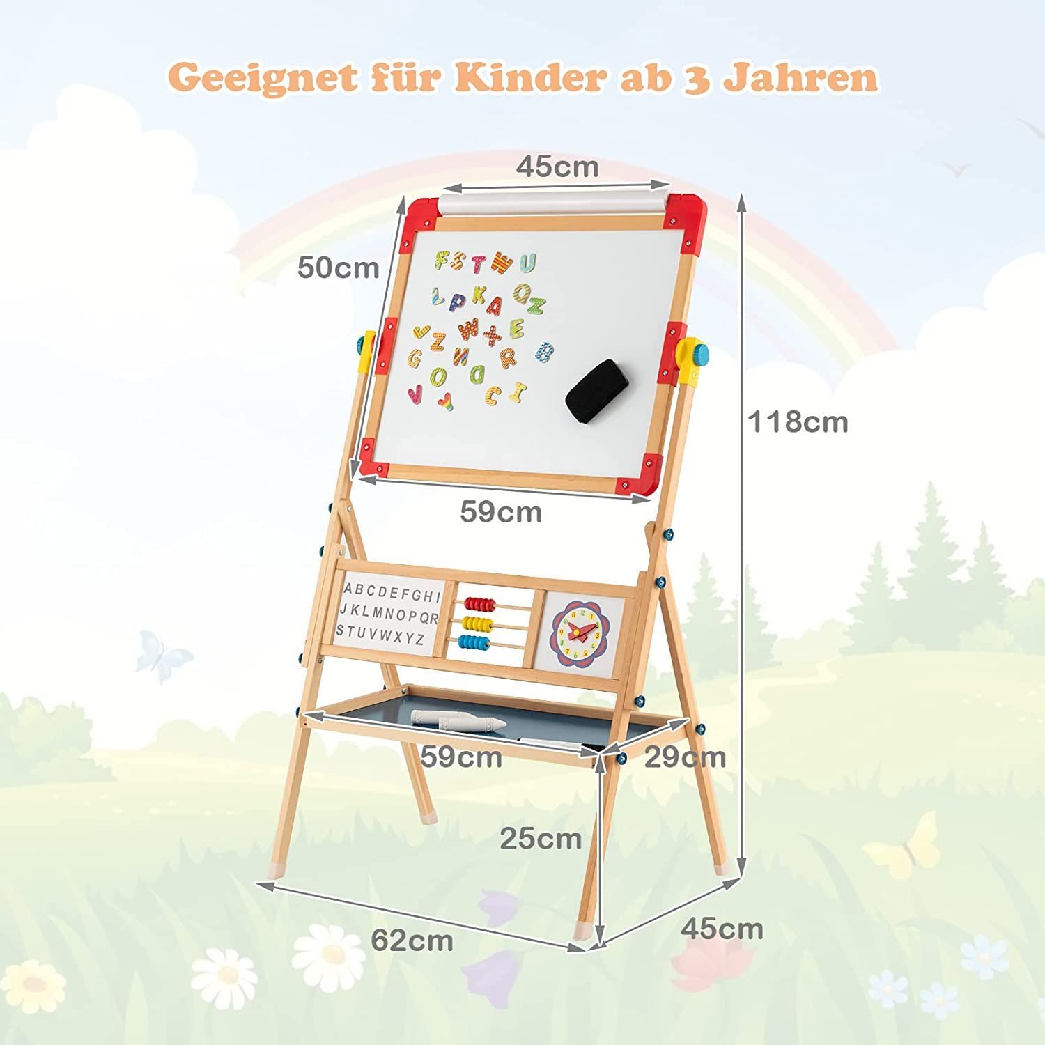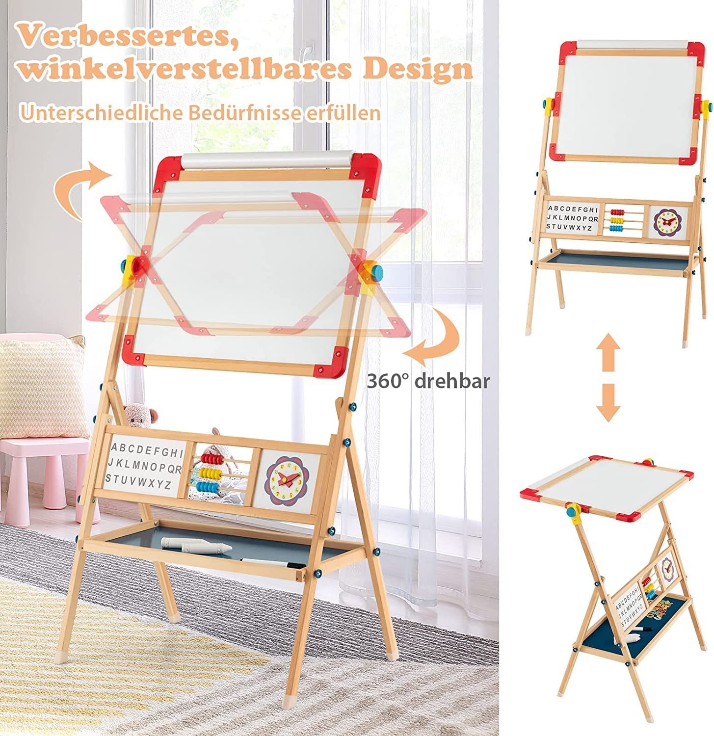 3 in 1 Kinderstaffelei 360°drehbar, Kinder doppelseitigem Zeichenbrett, Kindertafel