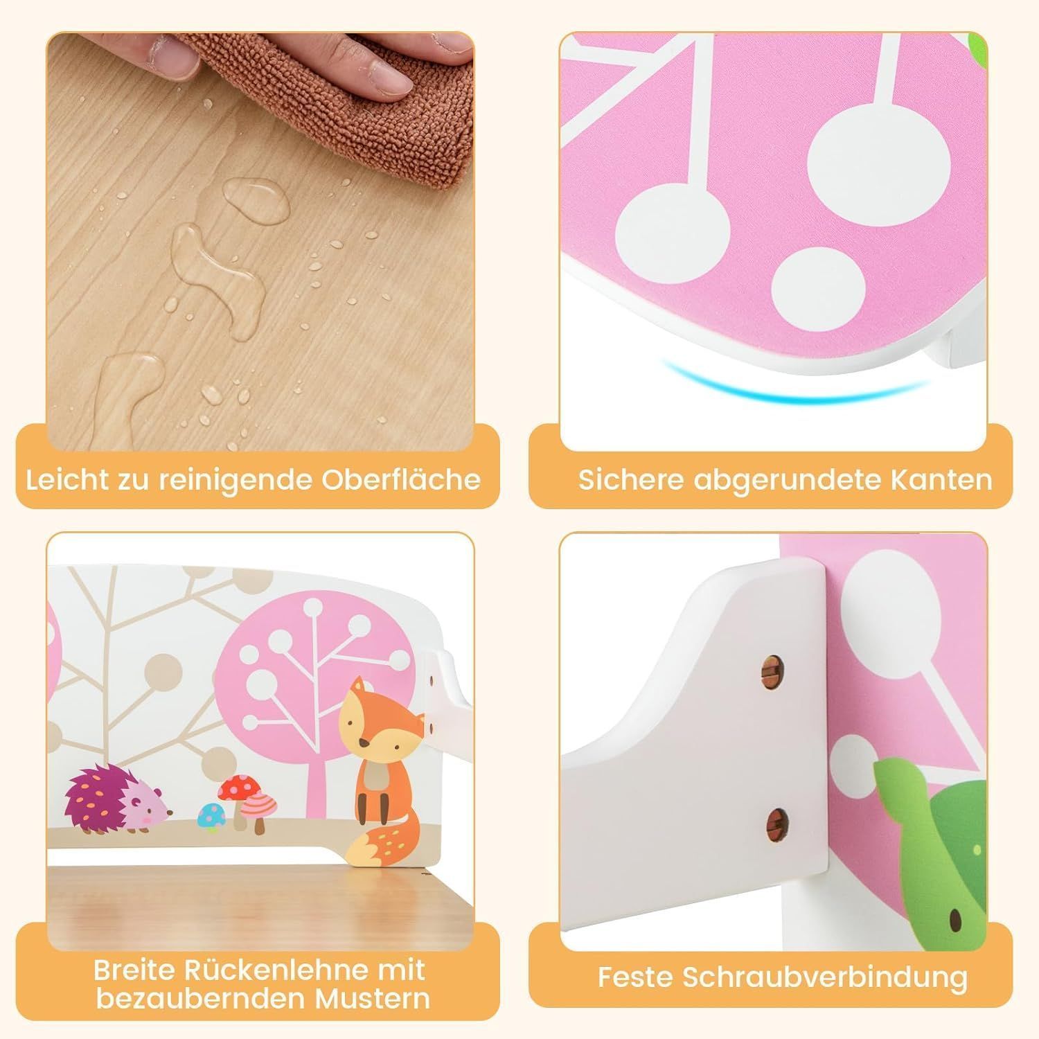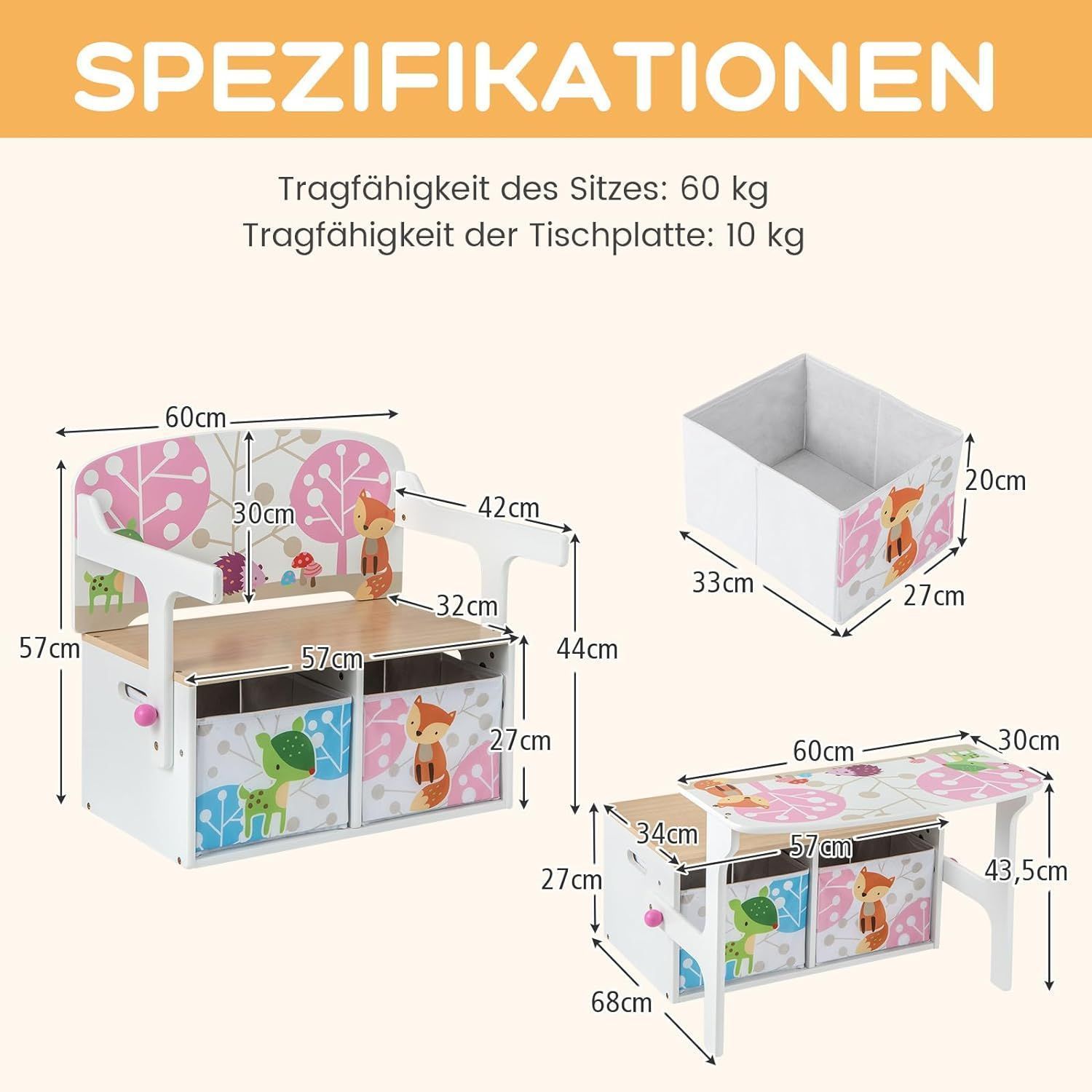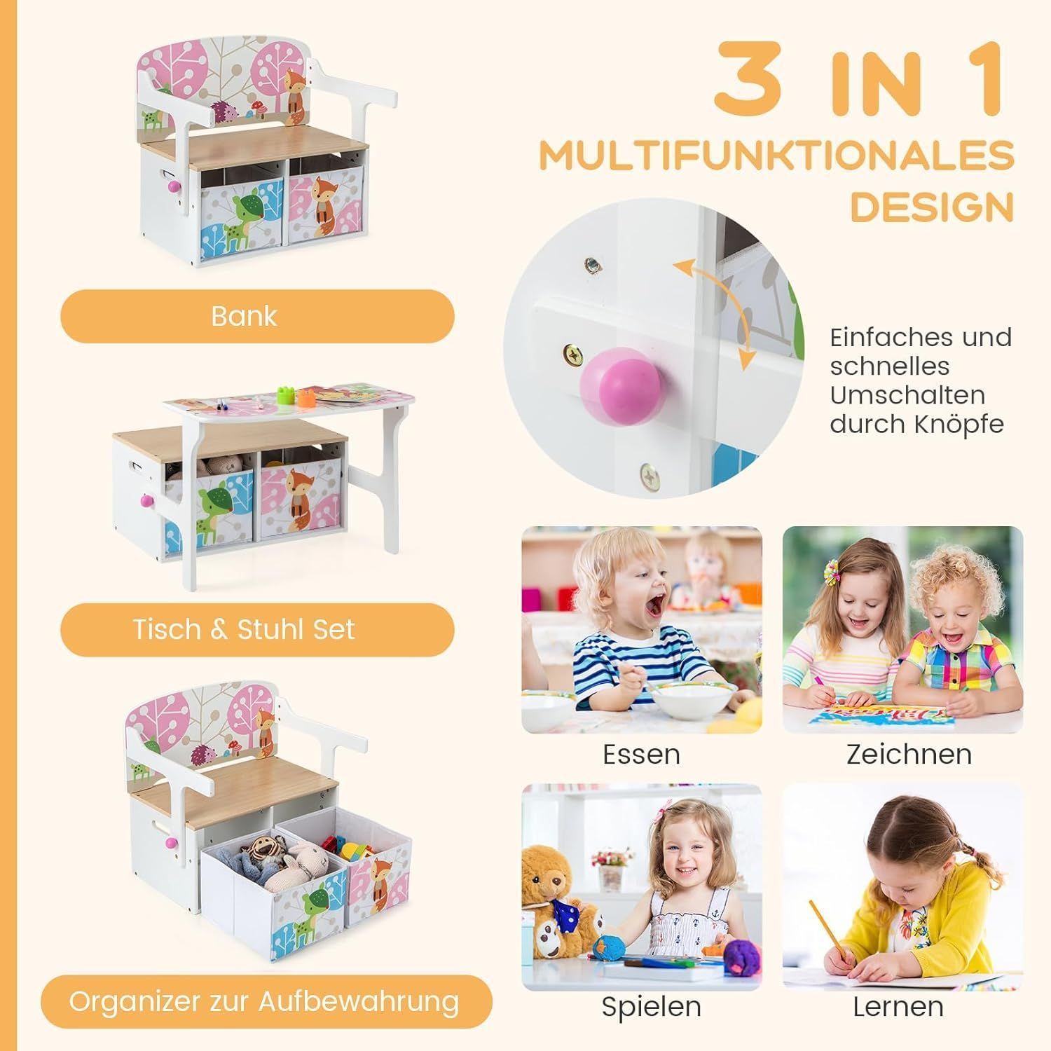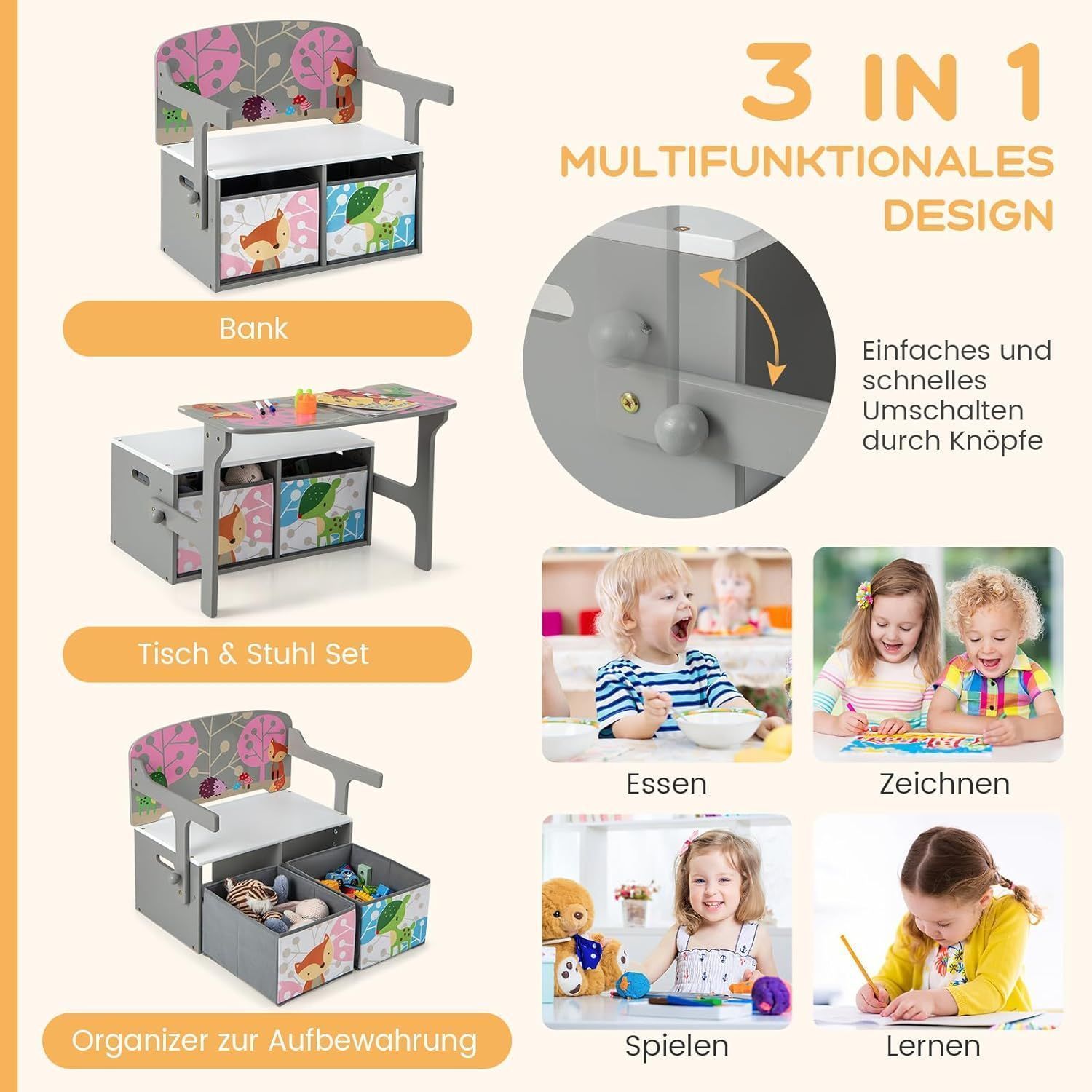 3-IN-1 Kindertisch mit Sitzbank, Kindersitzgruppe mit 2 abnehmbaren Körben