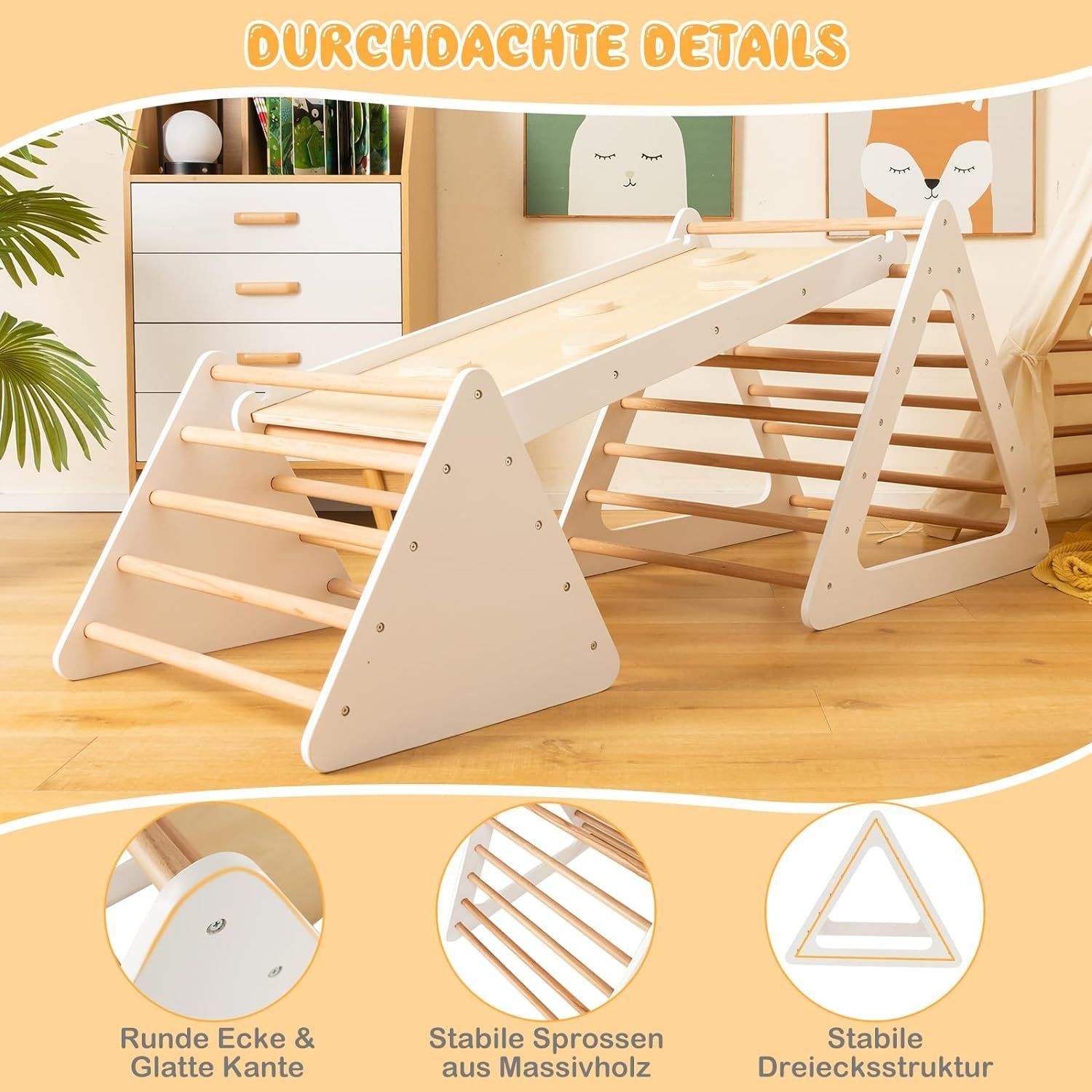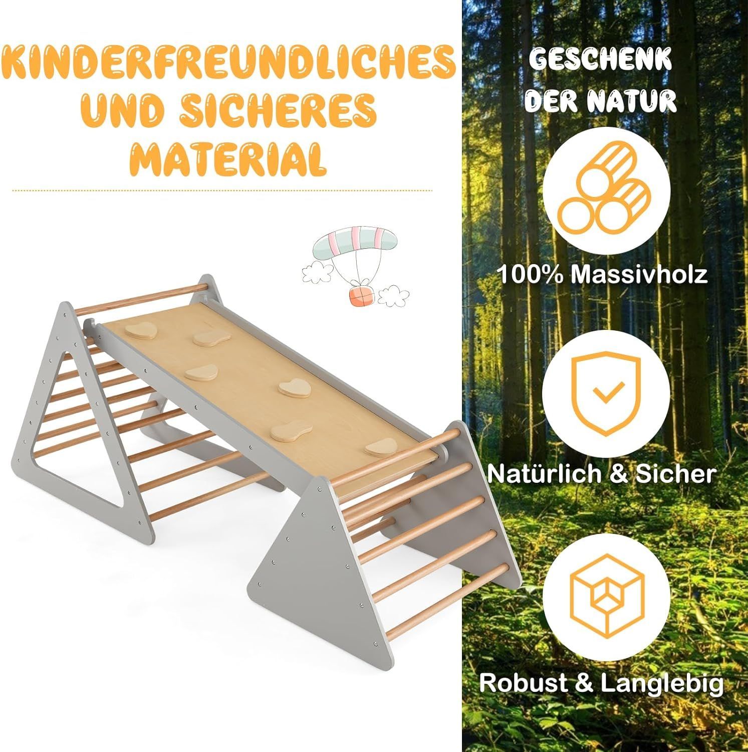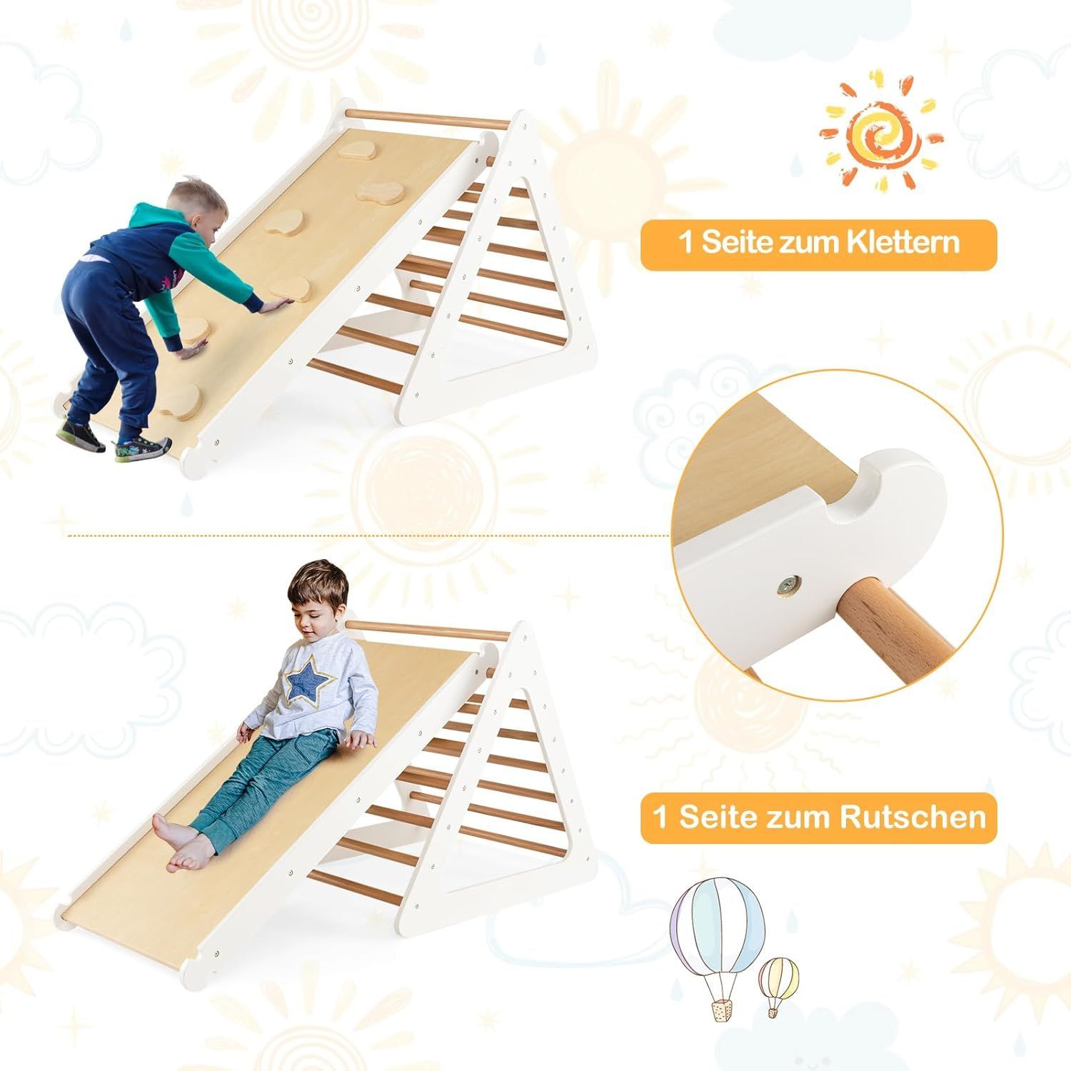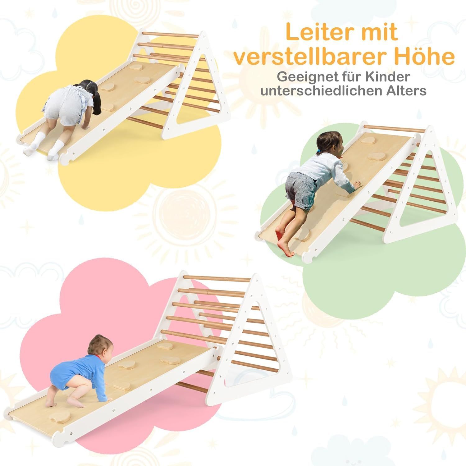 3 in 1 Kletterdreieck & Leiter & Rutsche, Klettergerüst mit doppelseitigen Rampe