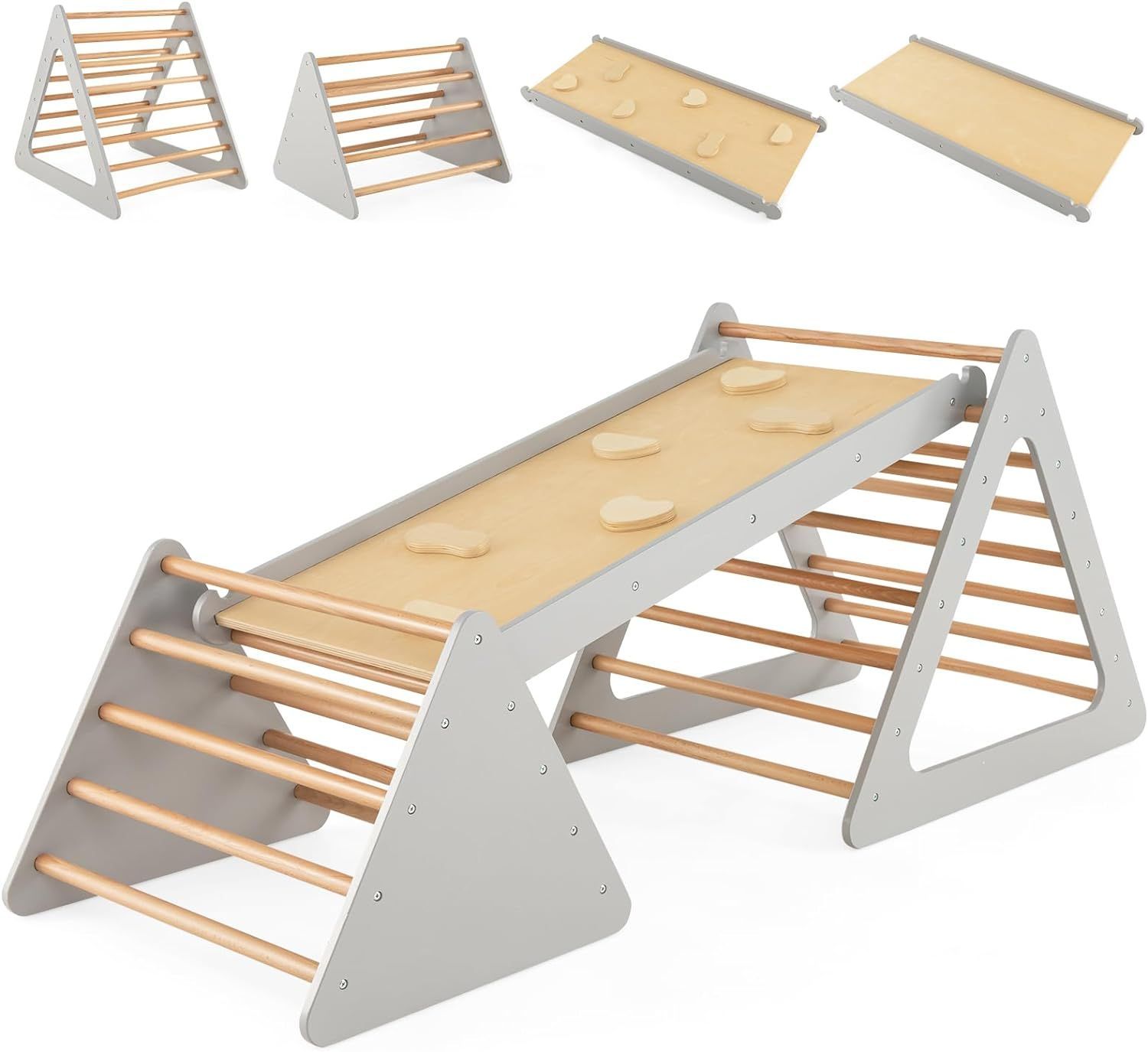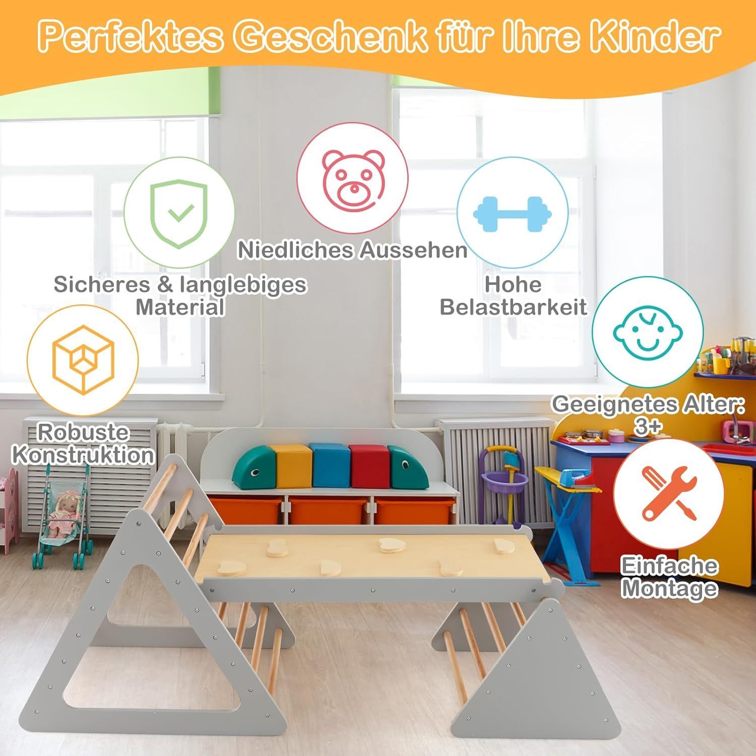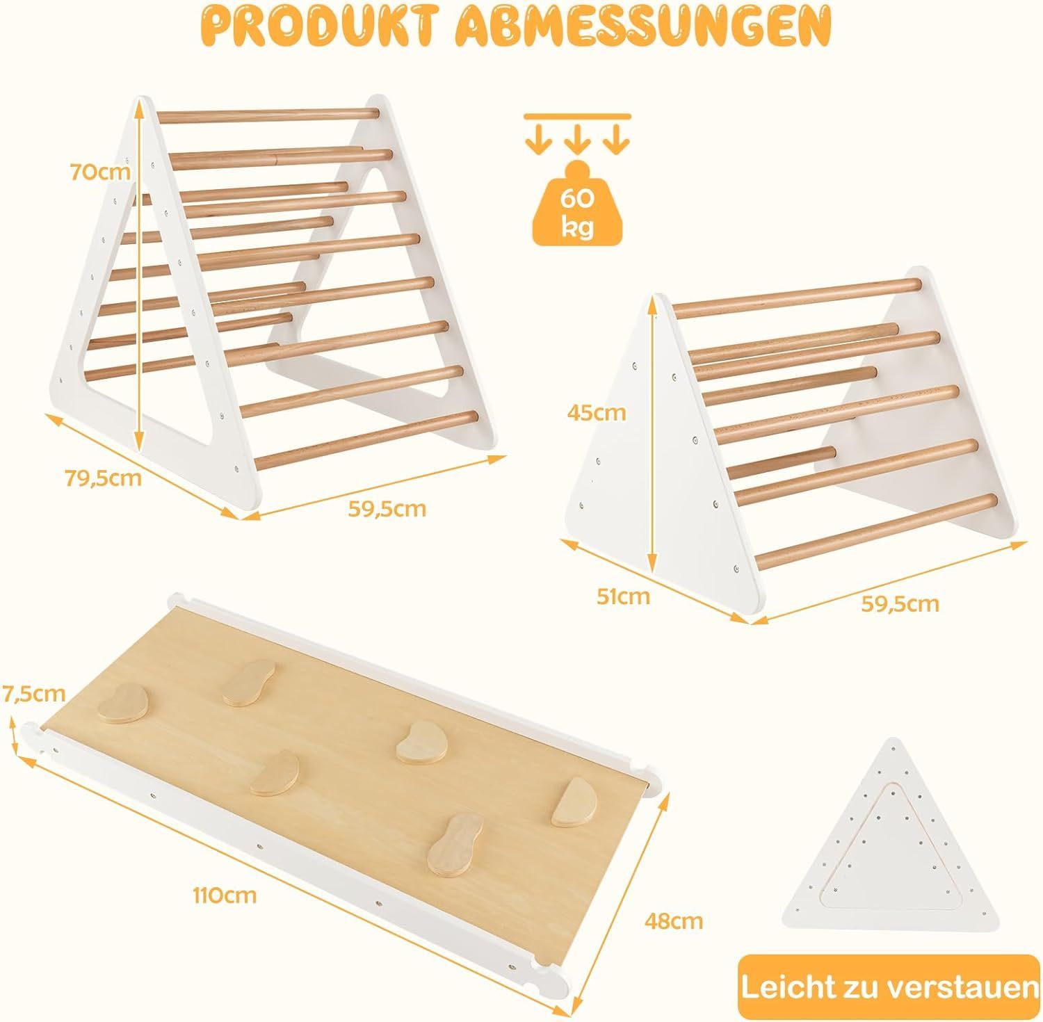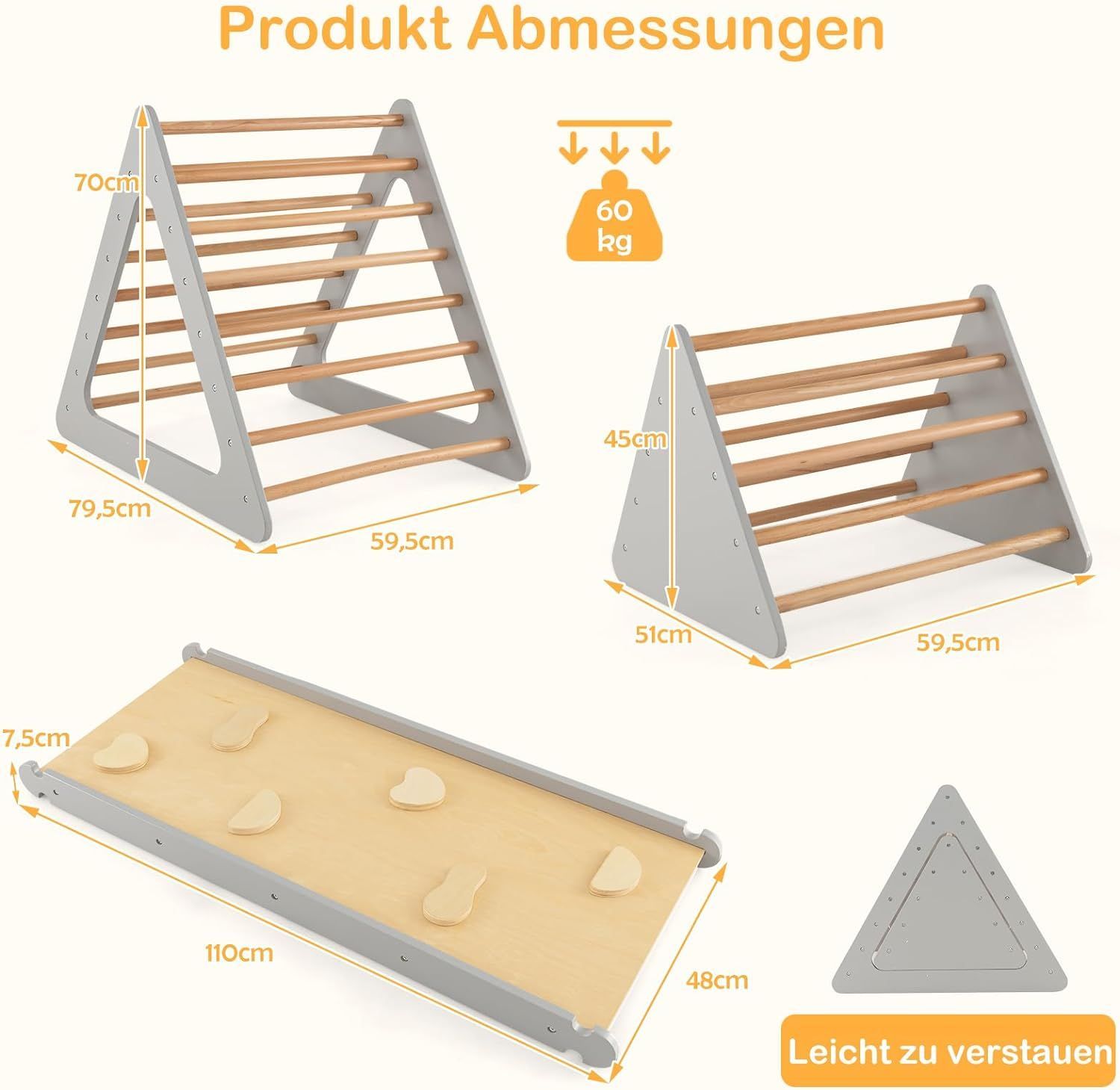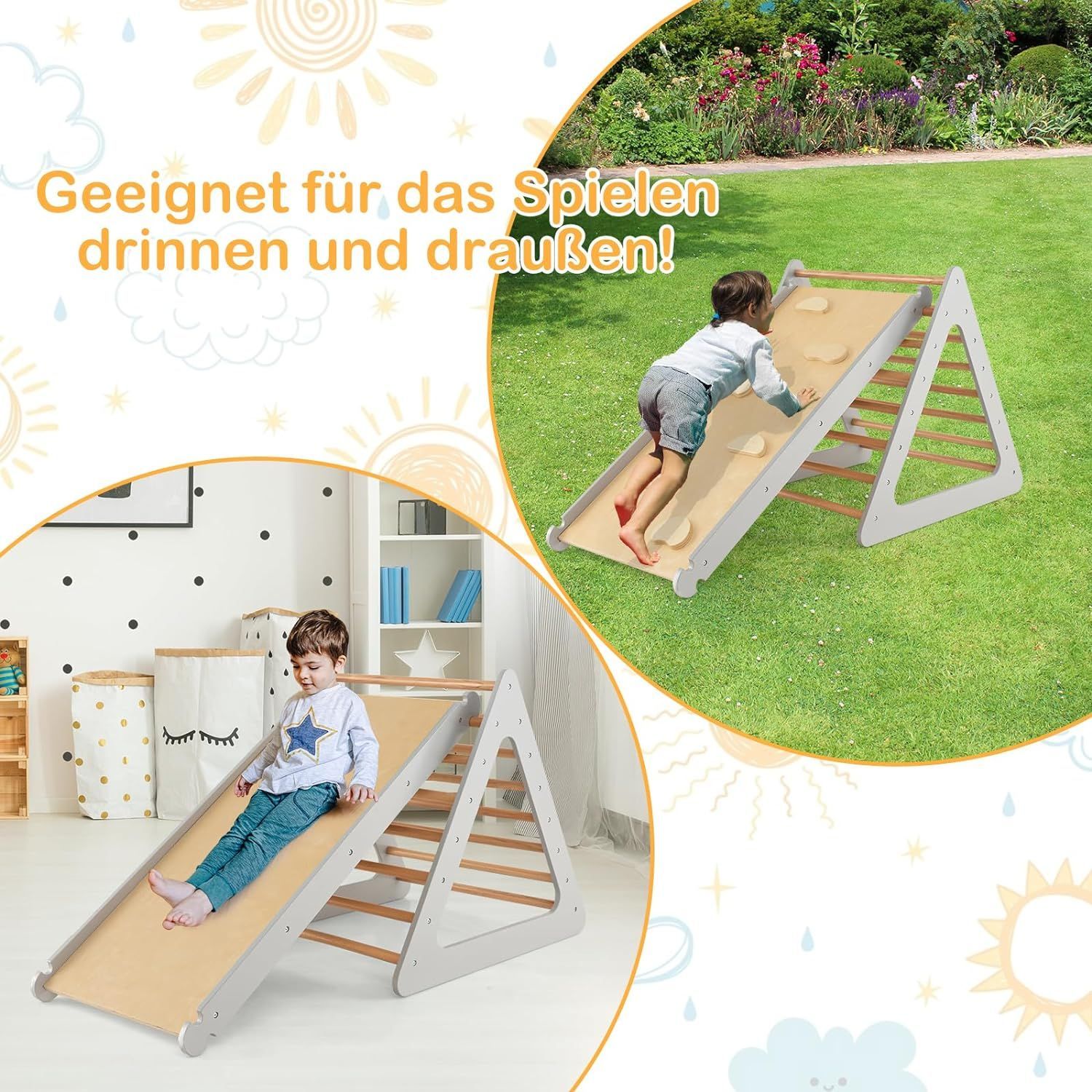 3 in 1 Kletterdreieck & Leiter & Rutsche, Klettergerüst mit doppelseitigen Rampe