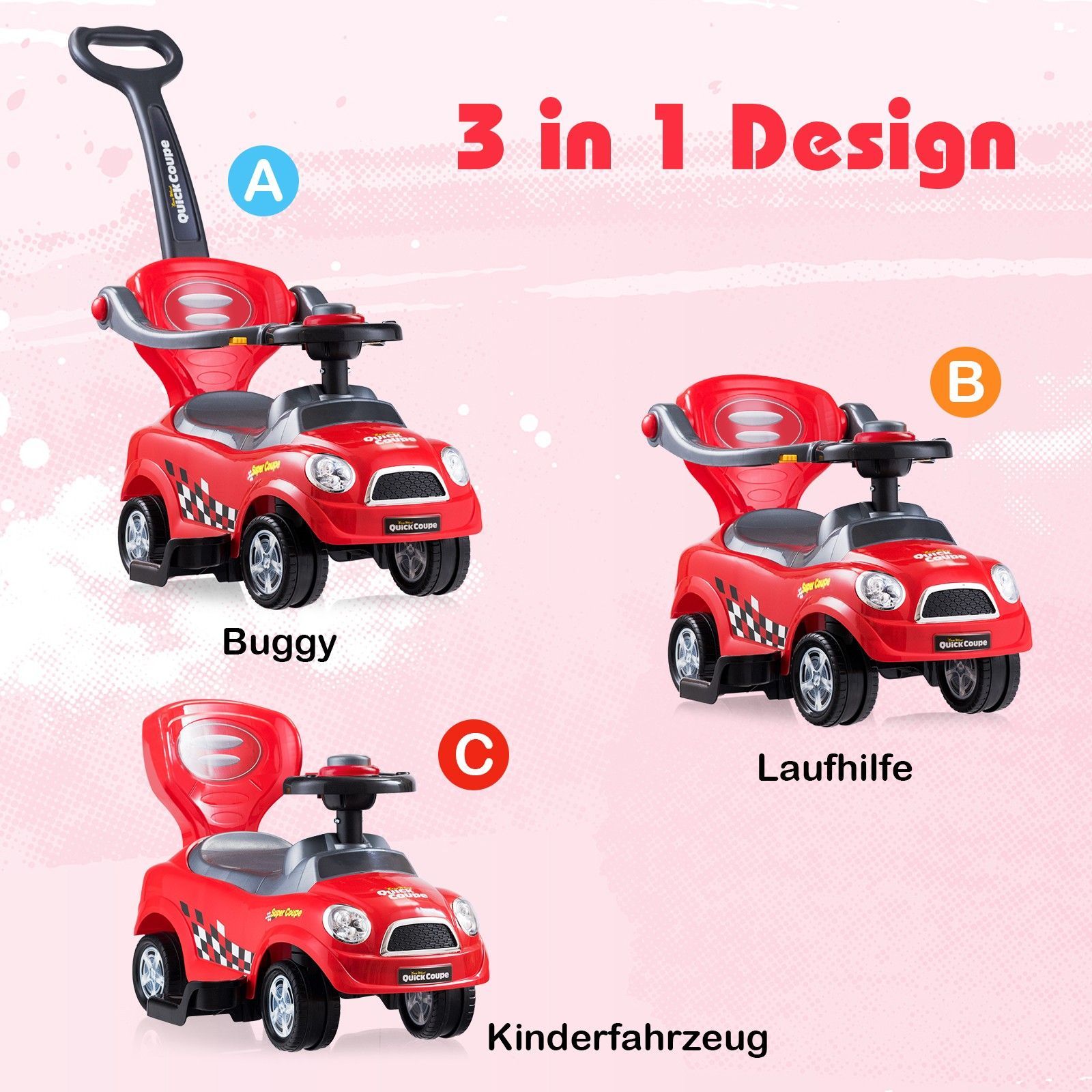 3 in 1 Rutschauto Schiebeauto, Rutschfahrzeug mit abnehmbarem Schiebgriff & Stauraum