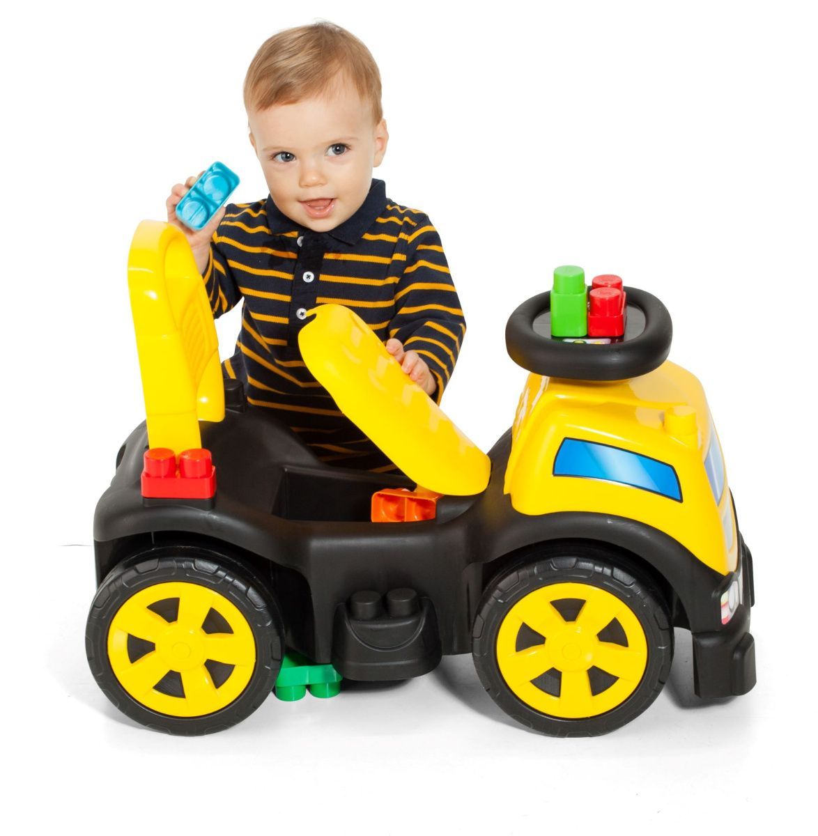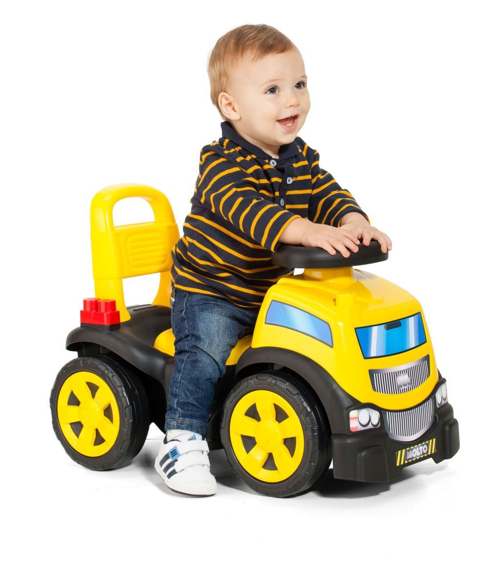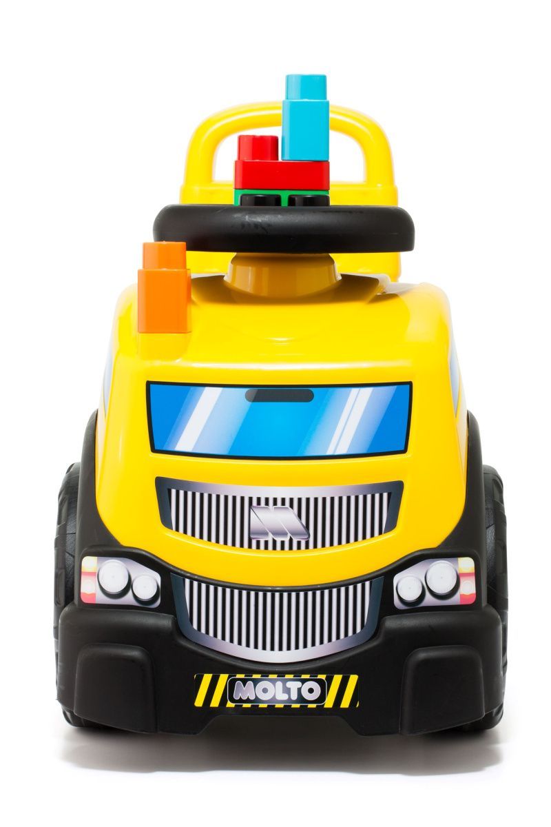 3-in-1 Rutscherauto LKW gelb mit Klemmbausteinen, Kinderfahrzeug mit Spielzeug : gelb