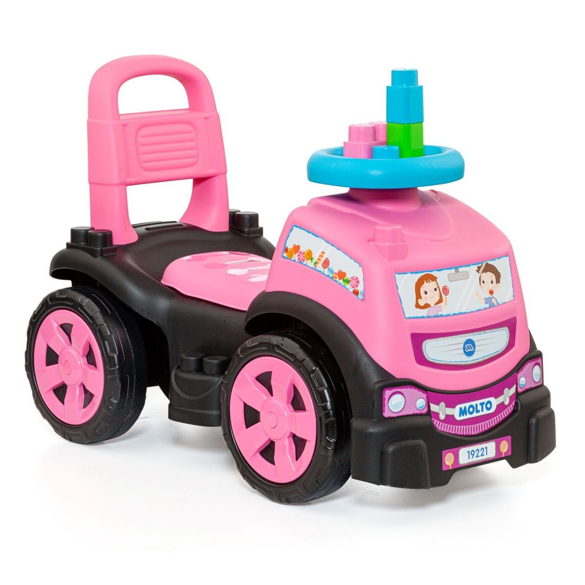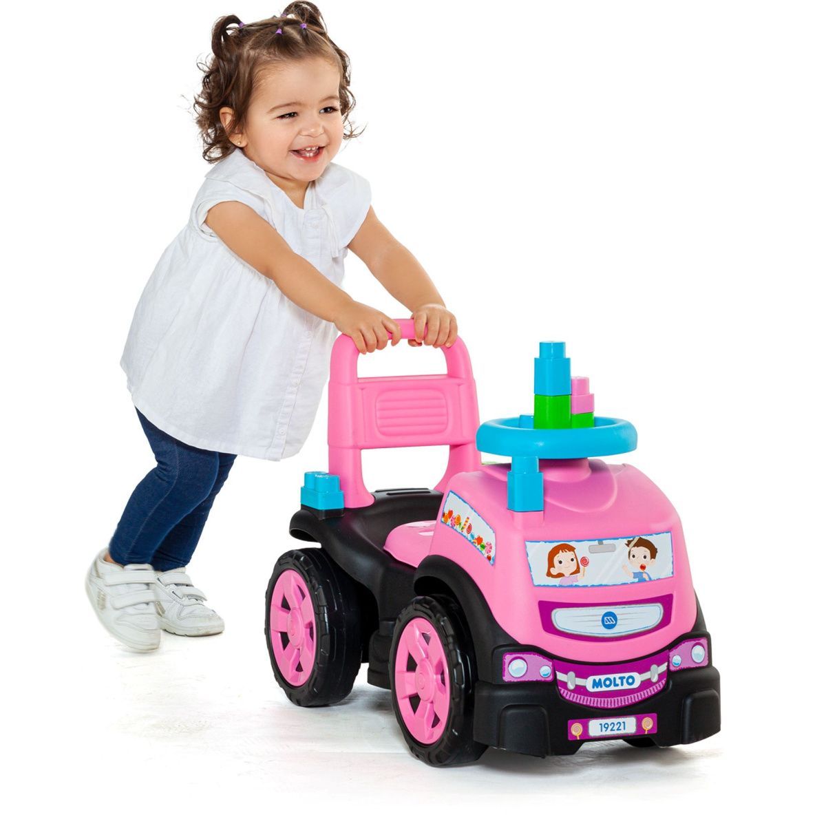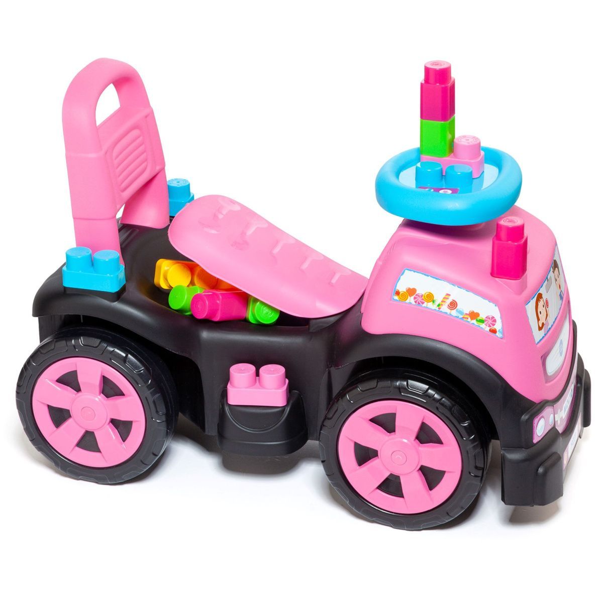 3-in-1 Rutscherauto LKW gelb mit Klemmbausteinen, Kinderfahrzeug mit Spielzeug : gelb