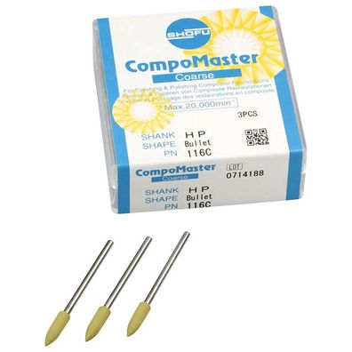 • SHOFU CompoMaster - Packung 3 Stück hellgelb, HP gelb/weiß, Figur Walze, ISO 040