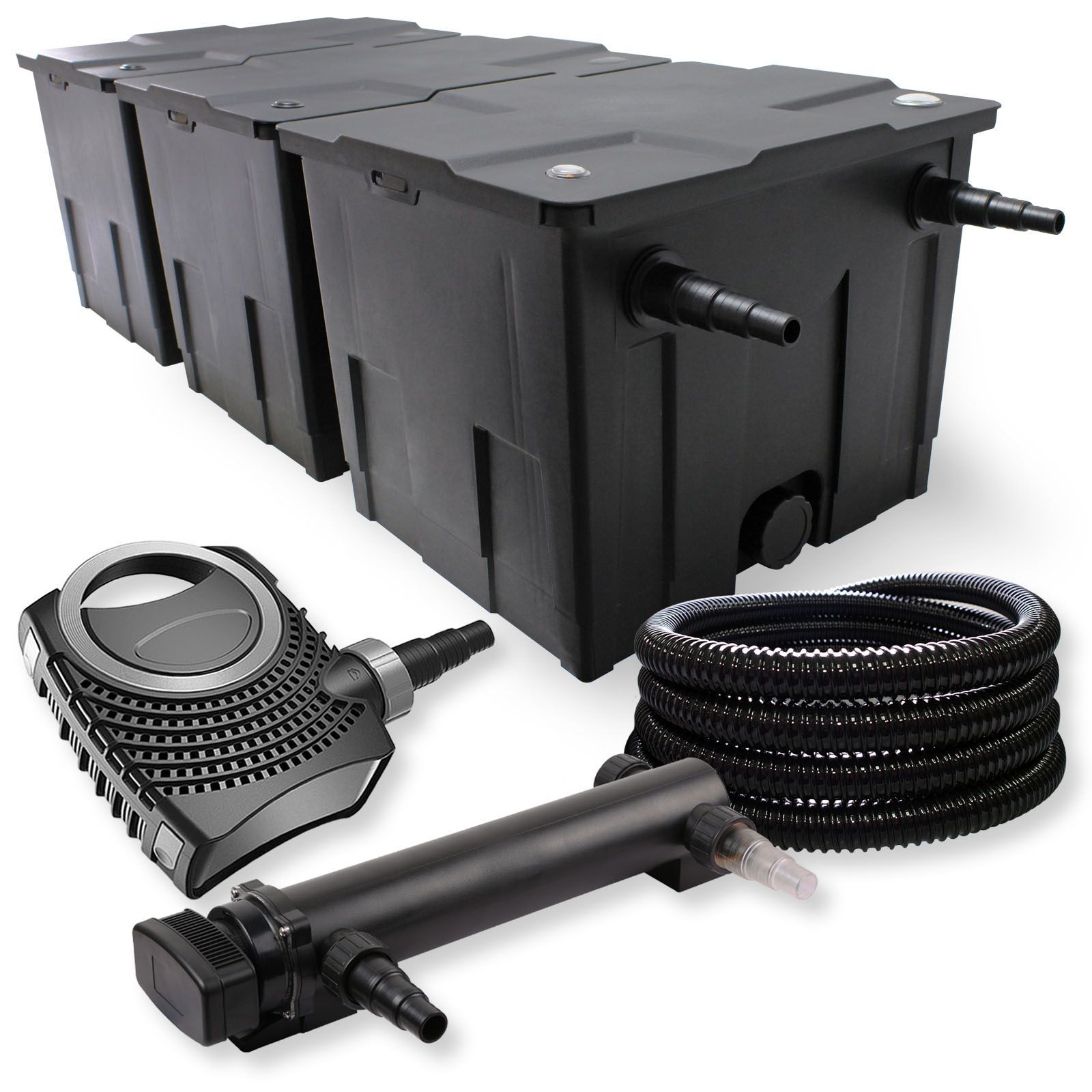 3-Kammer Filter Set 90000l 24W UVC 3er Teich Klärer NEO7000 50W Pumpe Schlauch