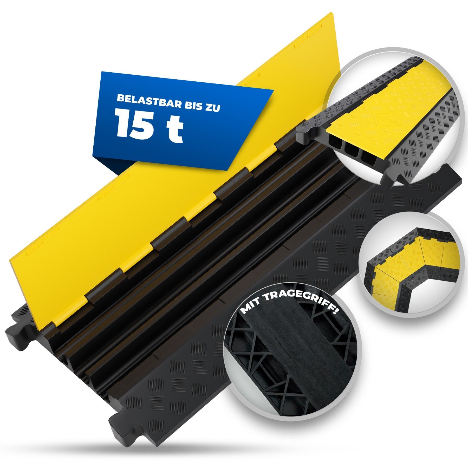 3 Kanal Kabelbrücke Schlauchbrücke m. Deckel Überfahrschutz Stolperschutz 15 t